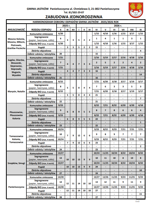 Harmonogram odbioru odpadów komunalnych