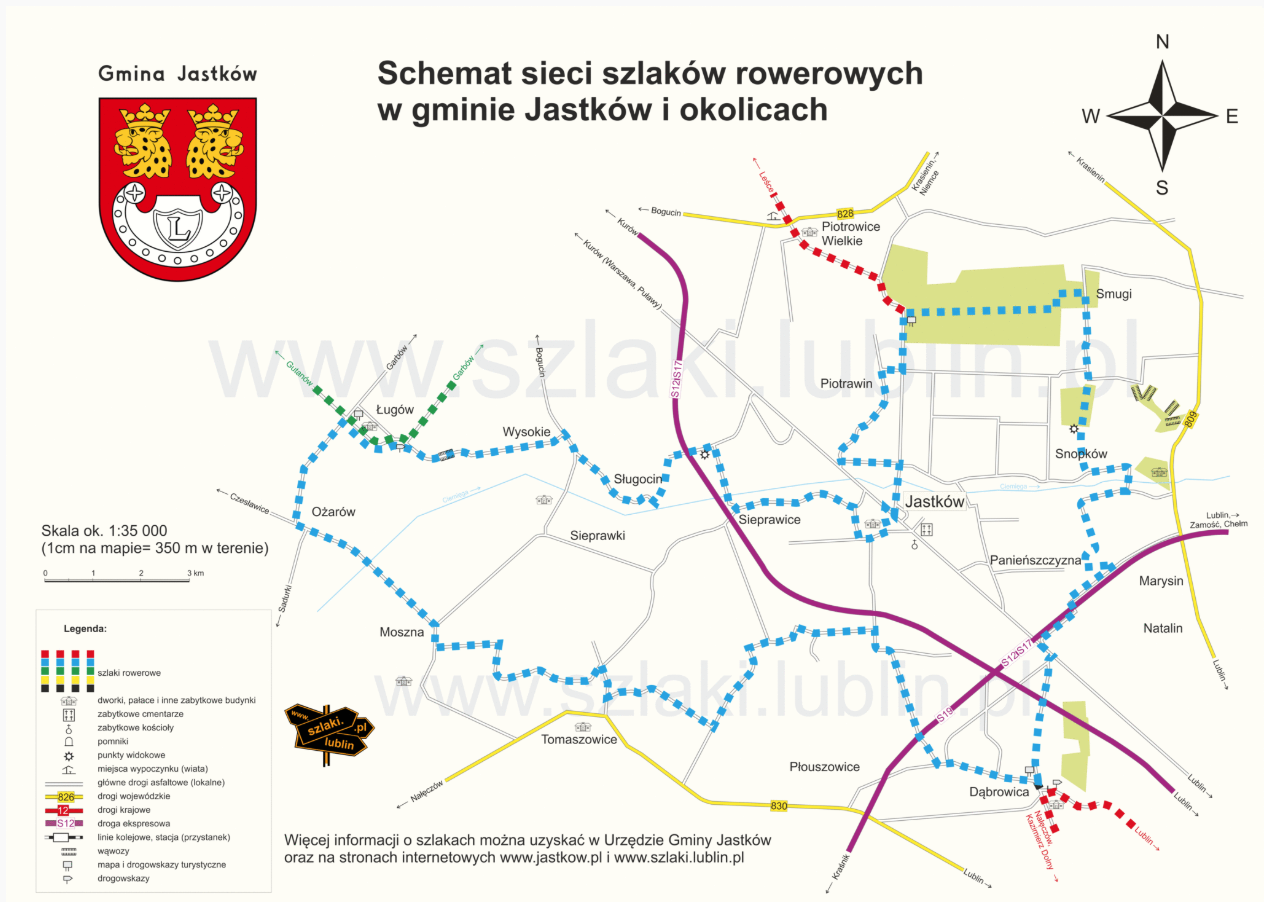 Cel operacji: „Utworzenie i rozbudowa 1 sieci szlaków pieszych i rowerowych na terenie Gminy Jastków poprzez modernizację i połączenie w jeden szlak rowerowy infrastruktury turystycznej i rekreacyjnej na terenie Gminy Jastków.”.