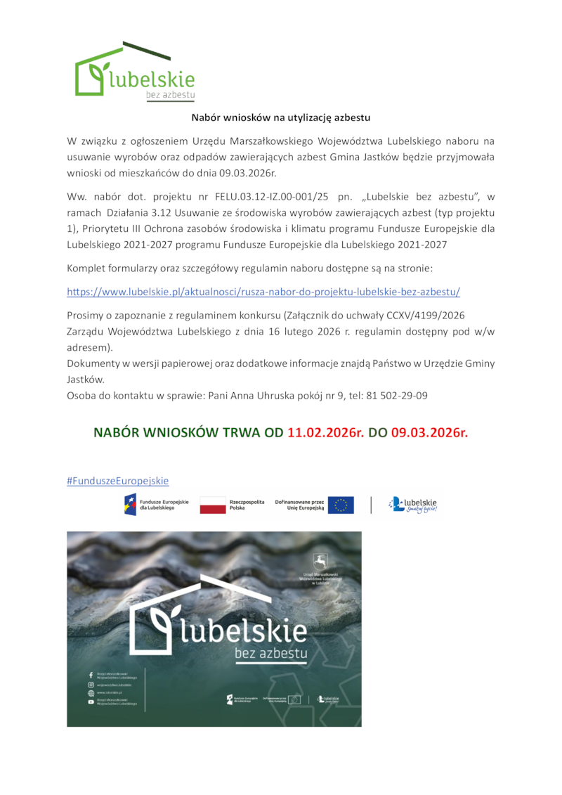 Administratorem Twoich danych będzie Wójt Gminy Jastków Panieńszczyzna, ul. Chmielowa 3, 21-002 Jastków tel. 81 502-04-25;