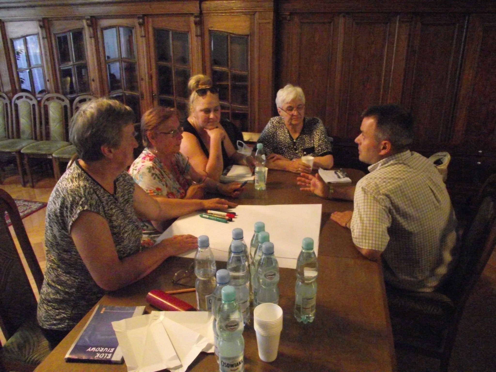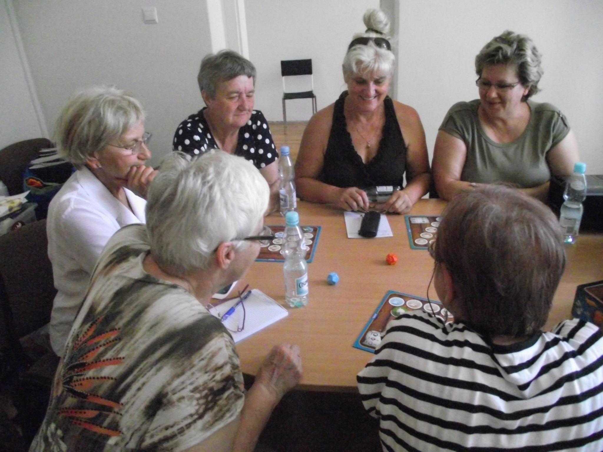Na przełomie lipca i sierpnia uczestnicy projektu wzięli udział w trzydniowych warsztatach podnoszących wiedzę i umiejętności w zakresie metod pracy z dziećmi. Zajęcia każdego dnia obejmowały inny moduł. Pierwszego dnia seniorki skupiły się na poznaniu oczekiwań dzieci z podziałem na te w wieku do trzech i do sześciu lat. Podczas warsztatów Panie pracowały nad określeniem potrzeb i zachowań dzieci właściwych dla tego okresu rozwoju, starając się je jak najlepiej zrozumieć i zinterpretować . W kolejnym dniu seniorki poznawały metody pracy z dziećmi ze szczególnym uwzględnieniem zabaw, jakie można przeprowadzić z najmłodszymi. Jak wiadomo, wiedza najlepiej sprawdza się w praktyce, zatem nasze seniorki wpadły w wir zabawy i same z zapałem rozegrały kilka gier planszowych, recytowały wierszyki, śpiewały piosenki i rymowanki, a także zaprezentowały gry znane z czasów ich młodości. Wiele z tych gier i piosenek znanych jest obecnie dzieciom, ale sporo z nich należałoby ocalić od zapomnienia i przekazać najmłodszym. Z takim przesłaniem zakończył się drugi dzień pracy. Ostatni dzień spotkań dotyczył określenia współpracy seniorów z danym typem organizacji działającej na rzecz małych dzieci na terenie gminy Jastków. Kolejnym etapem projektu było spotkanie z doradcą personalnym, który wydobył najmocniejsze strony każdej z Pań oraz pomagał w podjęciu decyzji odnośnie tematyki planowanych warsztatów z najmłodszymi.