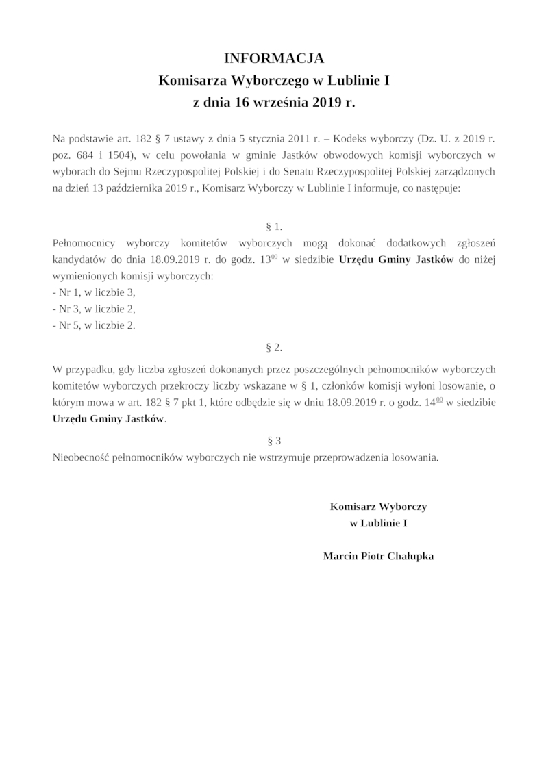 DODATKOWY NABÓR KANDYDATÓW DO KOMISJI DO 18.09.2019 G. 13:00