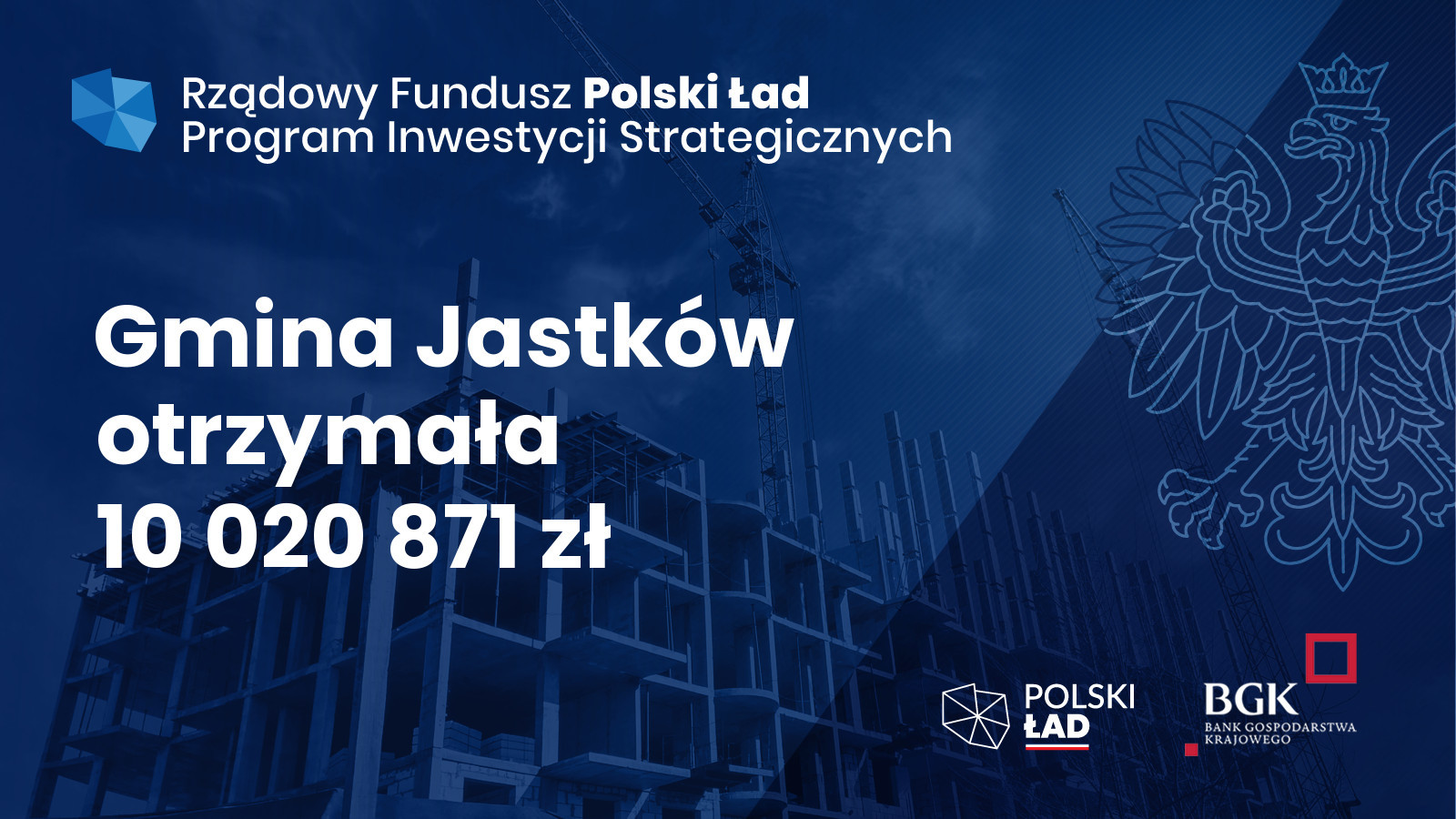 Jest nam miło poinformować, że Gmina Jastków otrzymała 10 milionów złotych z Rządowego Funduszu Polski Ład: Programu Inwestycji Strategicznych.