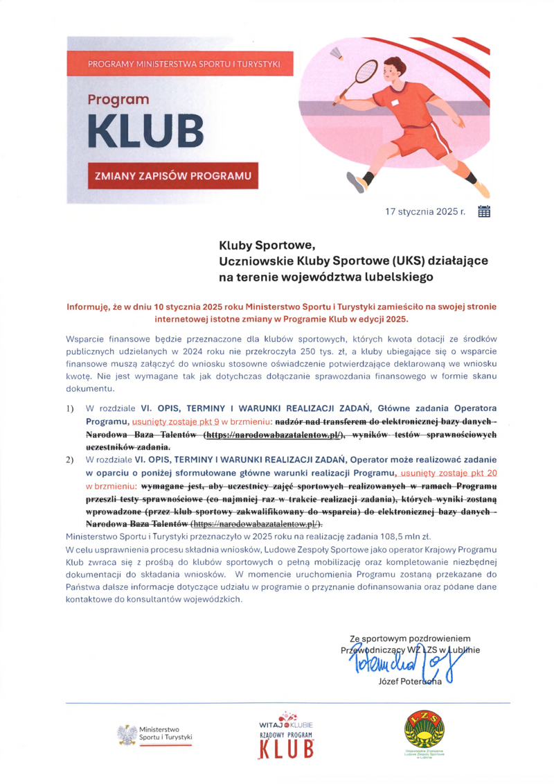 RZĄDOWY PROGRAM KLUB - EDYCJA 2025.