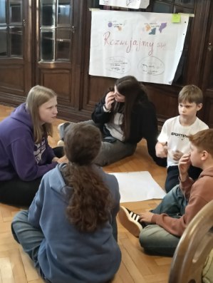 Uczniowie dowiedzieli się jakie są kompetencje Samorządu Uczniowskiego oraz Młodzieżowych Rad Gminy a także jakie możliwości współpracy z samorządem i społecznością lokalną oraz jakie możliwości pozyskania źródeł dofinansowania działań i pomysłów młodzieży.