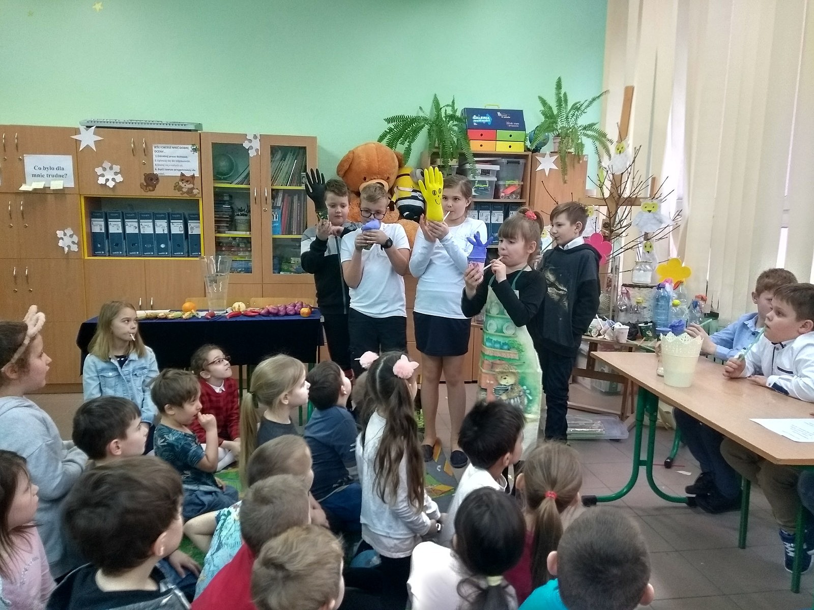 W trakcie spotkania z pierwszoklasistami można było odgadywać szkolne zagadki i wspólnie rozwiązać krzyżówkę, której hasłem okazała się SZKOŁA. Pierwszoklasiści opowiedzieli, jak zmieniło się ich życie, gdy rozpoczęli naukę w pierwszej klasie, a Goście mogli wykazać się umiejętnością gry w domino – zbudowali drogę z domu do szkoły. Otrzymali też pracę domową – puzzle, z których dowiedzą się, gdzie spędzą najbliższe wakacje.