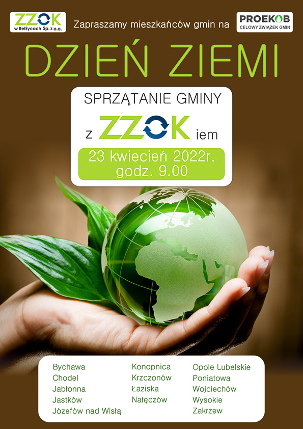 Gmina Jastków informuję, że w tym roku odbędzie się akcja ekologiczna pn. ”Sprzątanie z ZZOKiem”. Jest to działanie z zakresu edukacji ekologicznej, którą gmina realizuje razem z Zakładem Zagospodarowania Odpadów Komunalnych w Bełżycach.