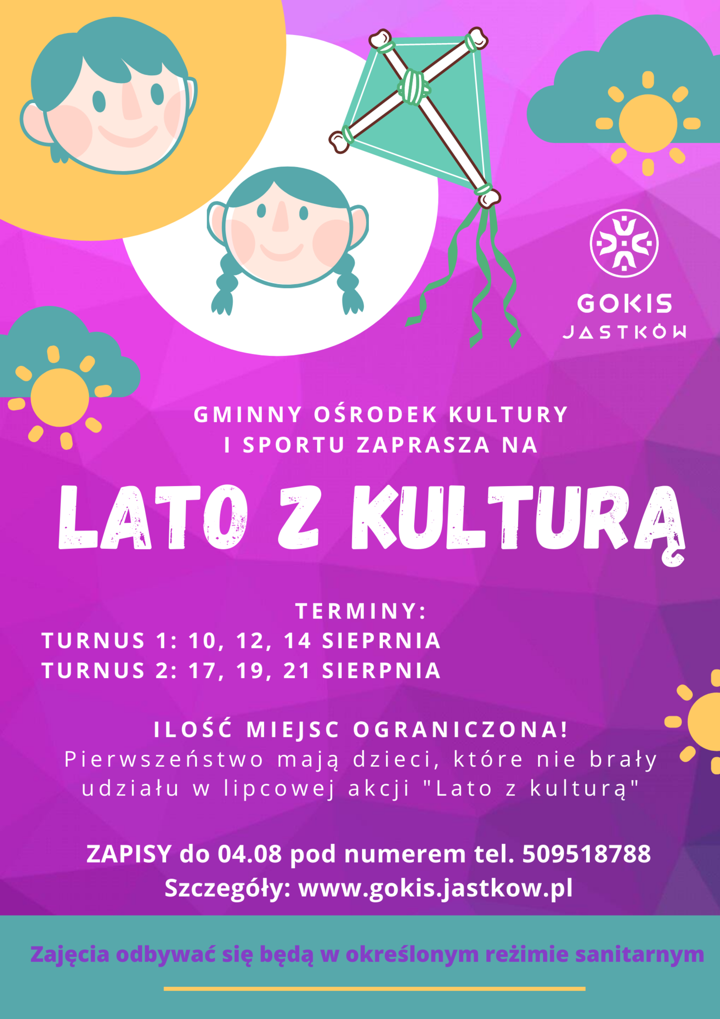 GMINNY OŚRODEK KULTURY I SPORTU W JASTKOWIE ZAPRASZA NA SIERPNIOWĄ EDYCJĘ AKCJI "LATO Z KULTURĄ 2020"