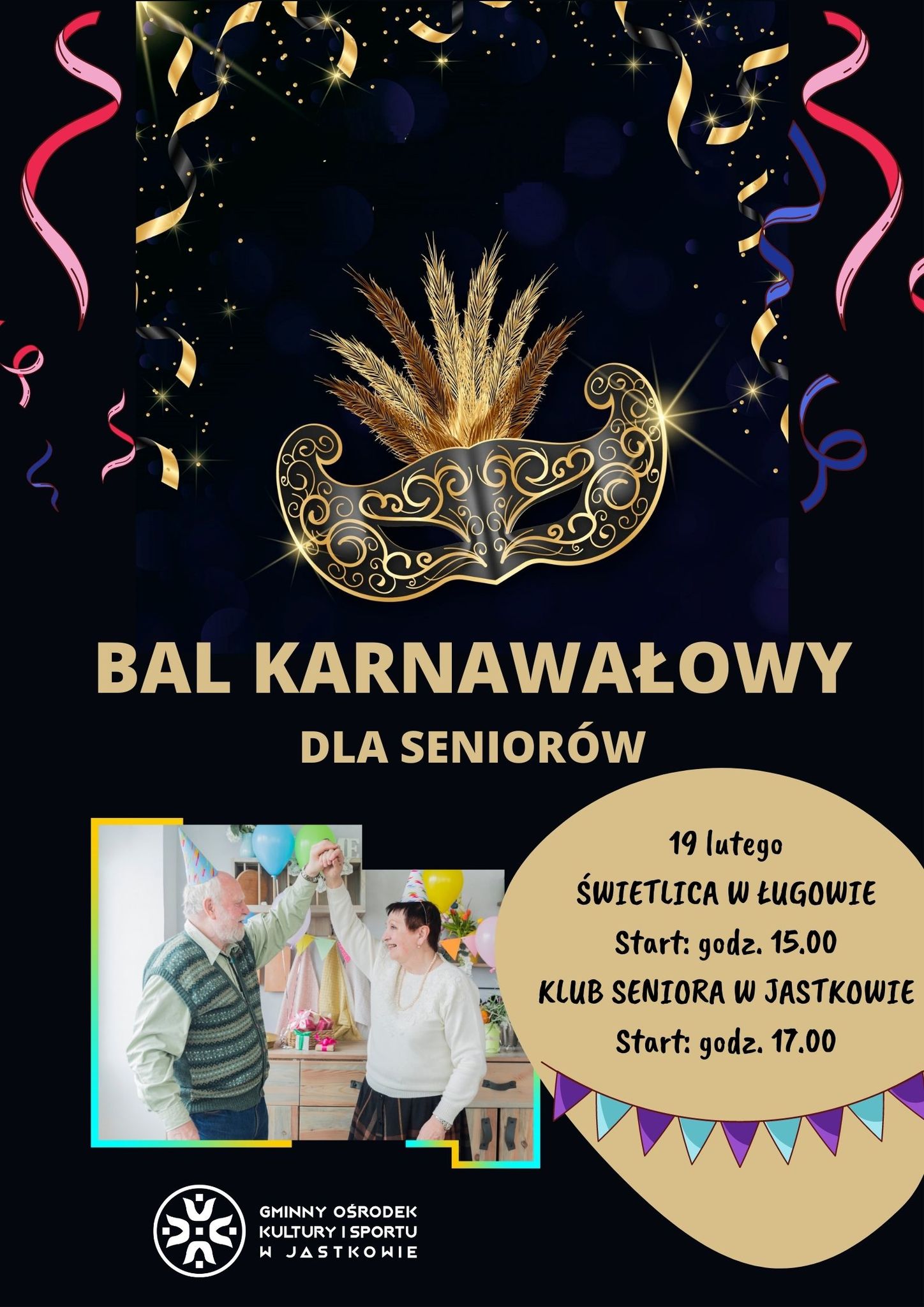 Gminny Ośrodek Kultury i Sportu zaprasza Seniorów na Bale Karnawałowe - szczegóły na plakacie.