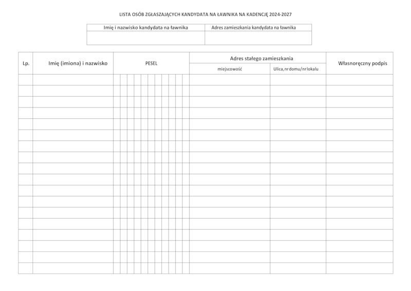 DO ZGŁOSZENIA KANDYDATA NA ŁAWNIKA DOKONANEGO NA KARCIE ZGŁOSZENIA DOŁĄCZA SIĘ NASTĘPUJĄCE DOKUMENTY: