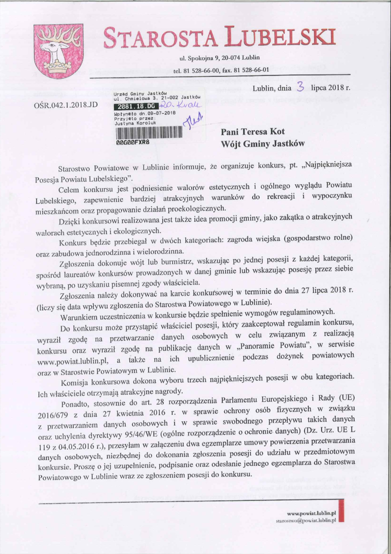 Serdecznie zachęcamy posiadaczy pięknych posesji do wzięcia udziału w konkursie pn. "Najpiękniejsza Posesja Powiatu Lubelskiego" organizowanym przez Starostwo Powiatowe w Lublinie.