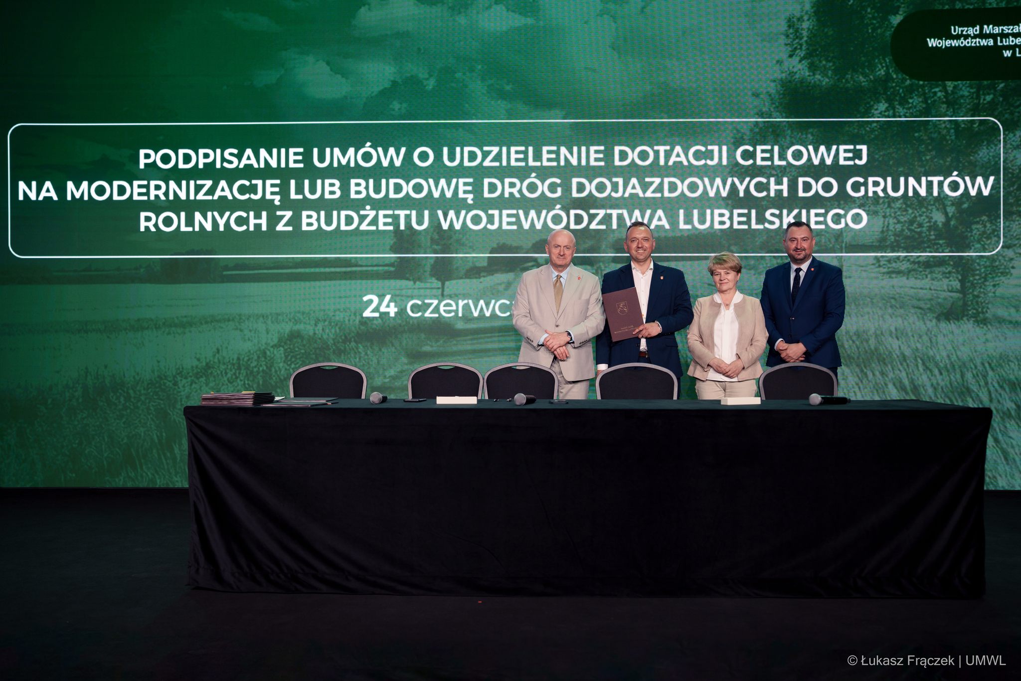 Nasza gmina znalazła się w gronie 20 samorządów z województwa lubelskiego, które otrzymały dotację celową na modernizację lub budowę dróg dojazdowych do gruntów rolnych. Dzięki podpisanej umowie z Marszałkiem Województwa Lubelskiego Jarosławem Stawiarskim oraz Wicemarszałkiem Markiem Wojciechowskim, otrzymaliśmy 200 000 zł dofinansowania na modernizację drogi w miejscowości Ługów.