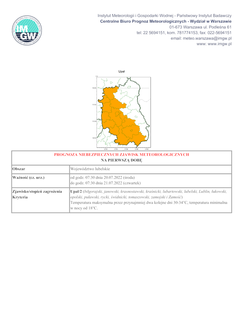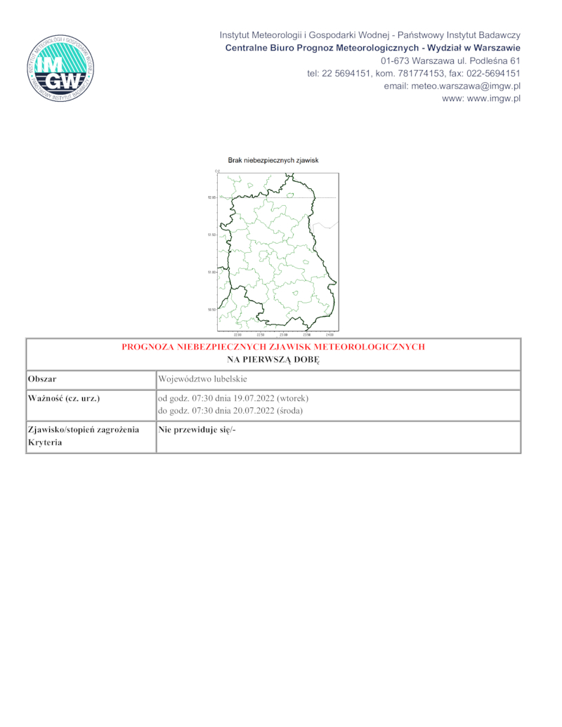 PROGNOZA NIEBEZPIECZNYCH ZJAWISK METEOROLOGICZNYCH