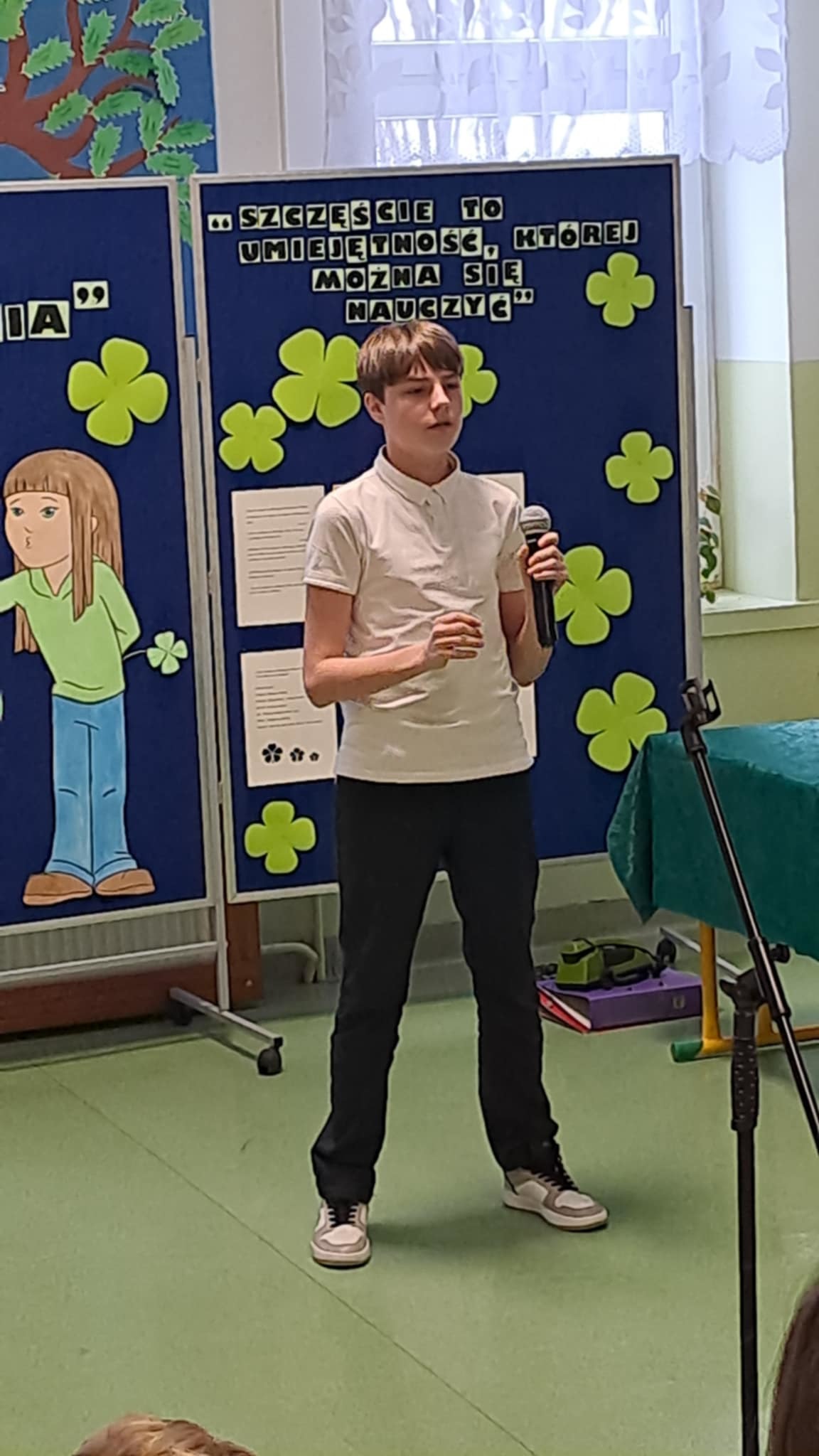 Przedstawiono cele, założenia oraz główne zadania przedsięwzięcia, a program artystyczny nawiązywał do wartości takich jak radość, humor i rozwijanie pasji. Uroczystość uświetnił krótki koncert ucznia, Konrada Adamczyka, uczestnika programu „Szansa na sukces”. Kulminacyjnym punktem uroczystości było symboliczne posadzenie „Drzewka Szczęścia” w szkolnym ogrodzie. Pod jego korzeniami umieszczone zostały kartki z przesłaniami uczniów – ich marzeniami, nadziejami i wartościami, które są dla nich ważne. Drzewko stanie się trwałym symbolem tej innowacji i będzie przypominać, że szczęście to umiejętność, której możemy się uczyć.