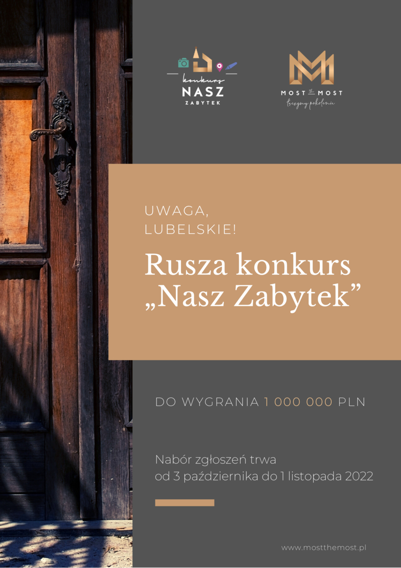 Uwaga, Lubelskie! Zabytek z twojego województwa ma szansę na milion złotych! Rusza konkurs Nasz Zabytek Fundacji Most the Most.