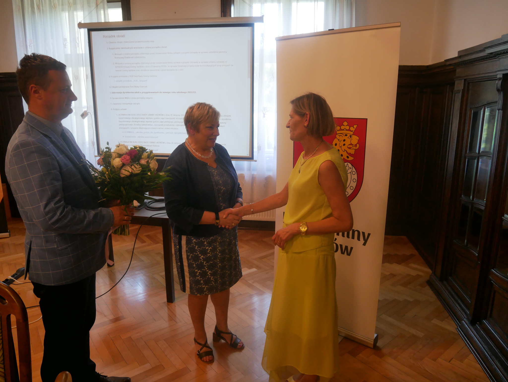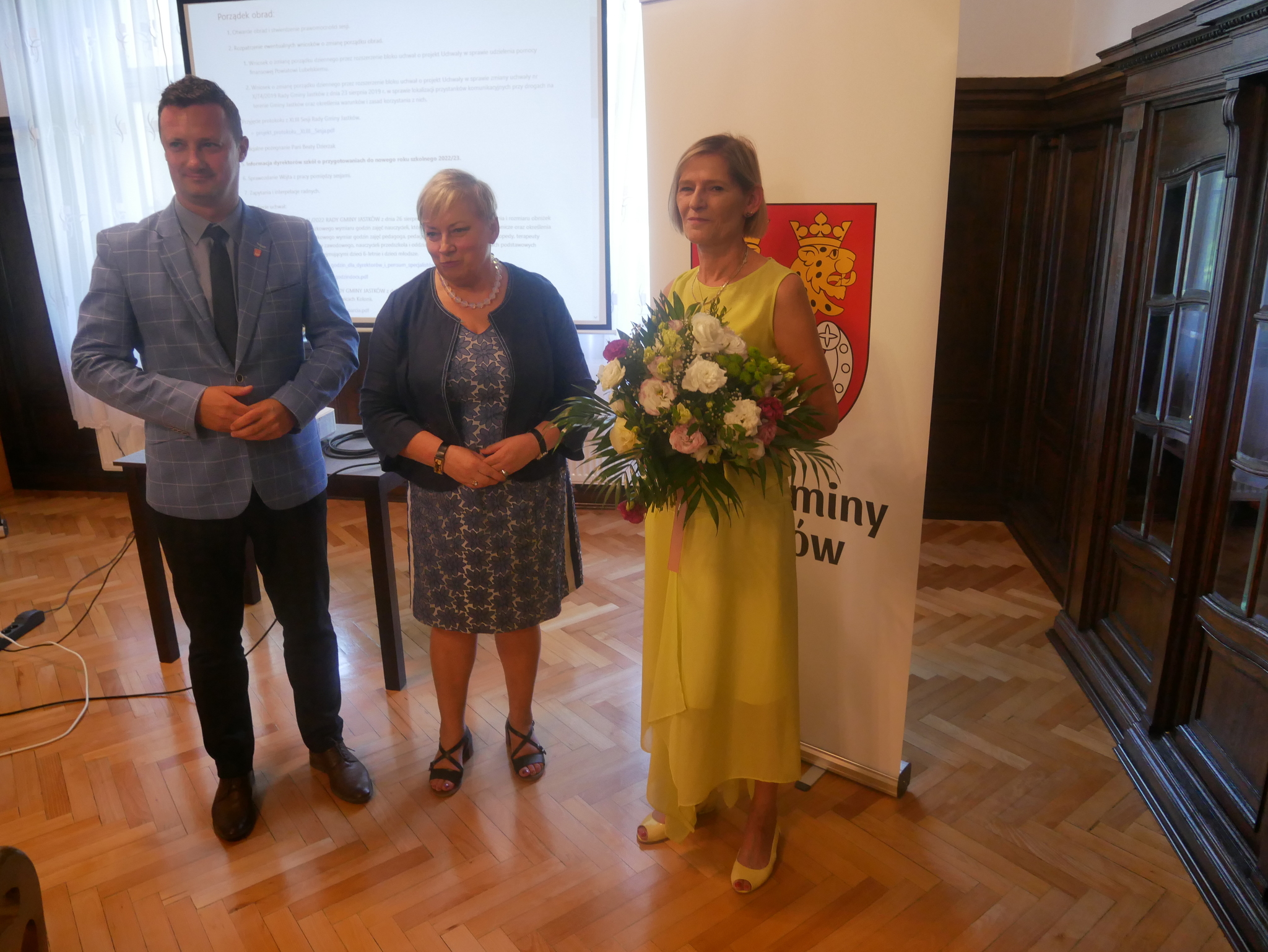 W trakcie posiedzenia Radni oraz Wójt Gminy oficjalnie pożegnali wieloletnią dyrektorkę Szkoły Podstawowej im. Bolesława Prusa w Płouszowicach, Panią Beatę Dzierżak.