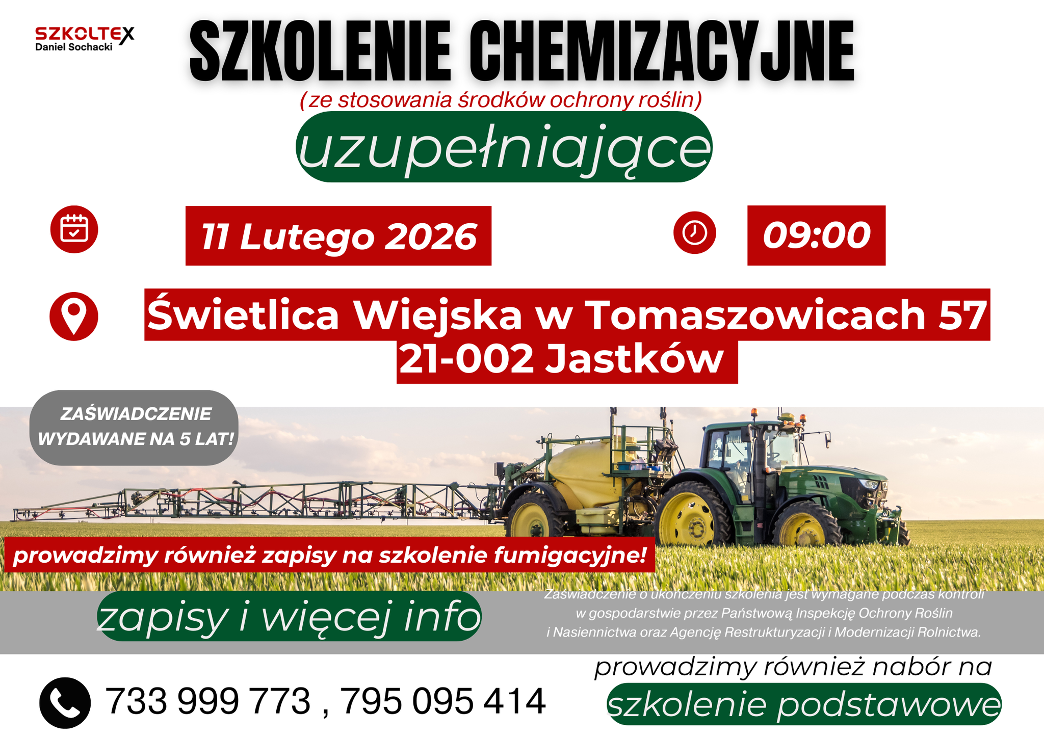 SZKOLENIE CHEMIZACYJNE W ZAKRESIE STOSOWANIA ŚRODKÓW OCHRONY ROŚLIN