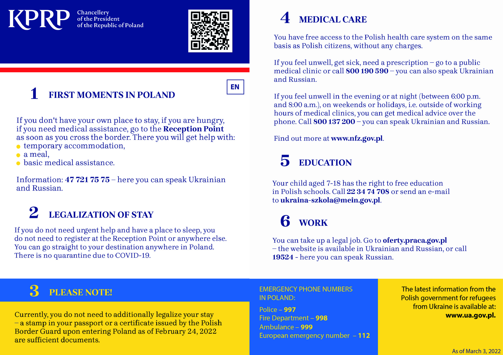 ULOTKI INFORMACYJNE DLA UCHODŹCÓW WOJENNYCH Z UKRAINY