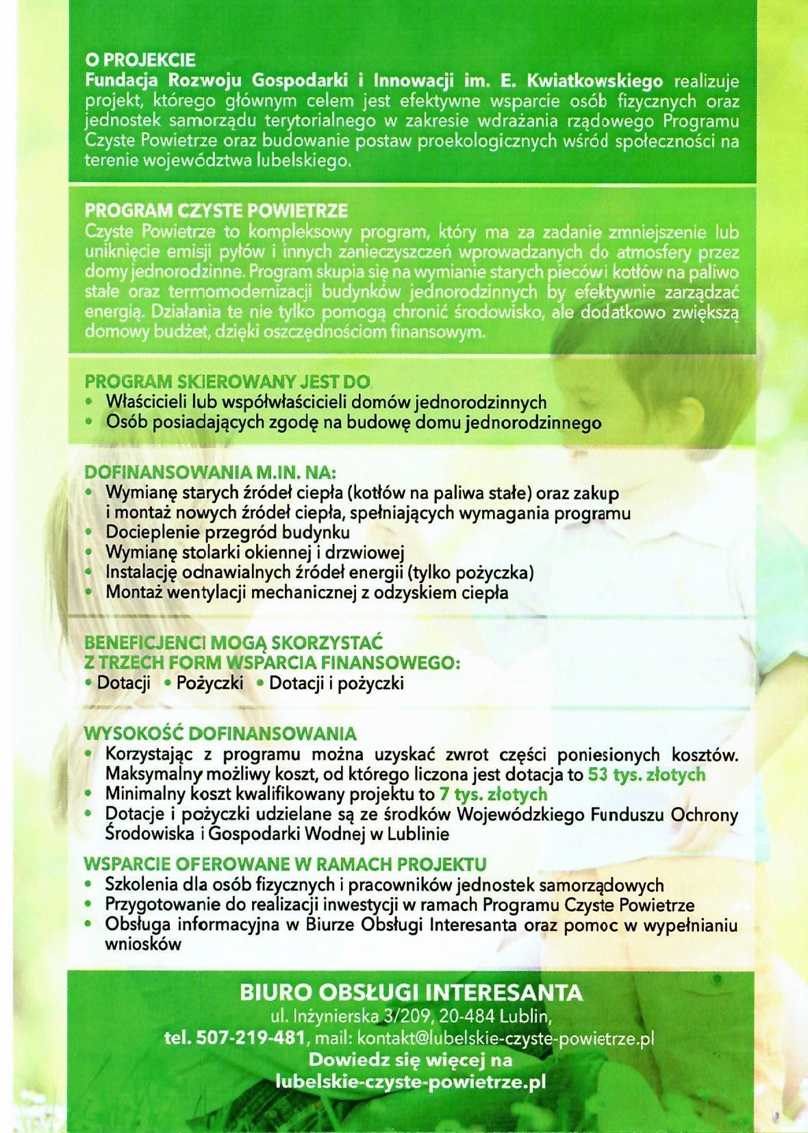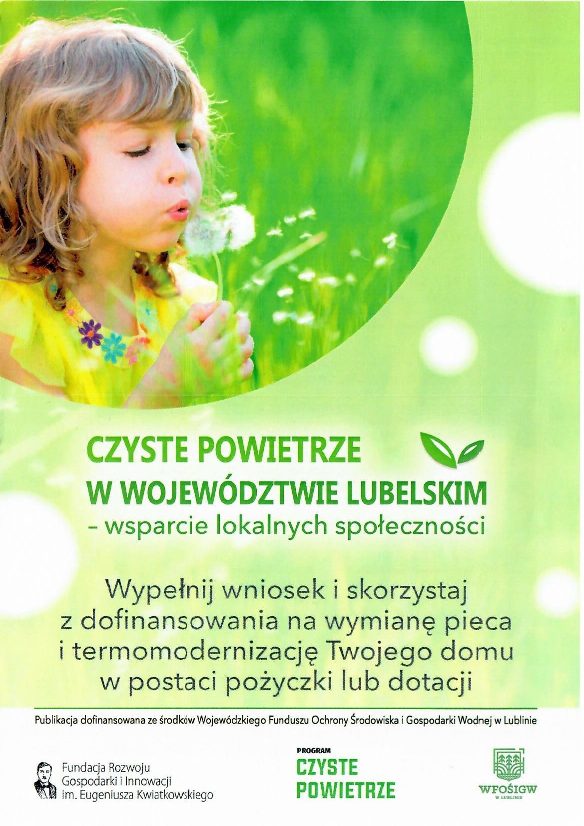 Informujemy, że w dniu 26 marca (wtorek) w godzinach 8:00 - 15:00 w Urzędzie Gminy będzie dyżurować ekspert z Fundacji Rozwoju Gospodarki i Innowacji imienia Eugeniusza Kwiatkowskiego oferując doradztwo w ramach projektu "Czyste Powietrze wsparcie dla lokalnych społeczności".
