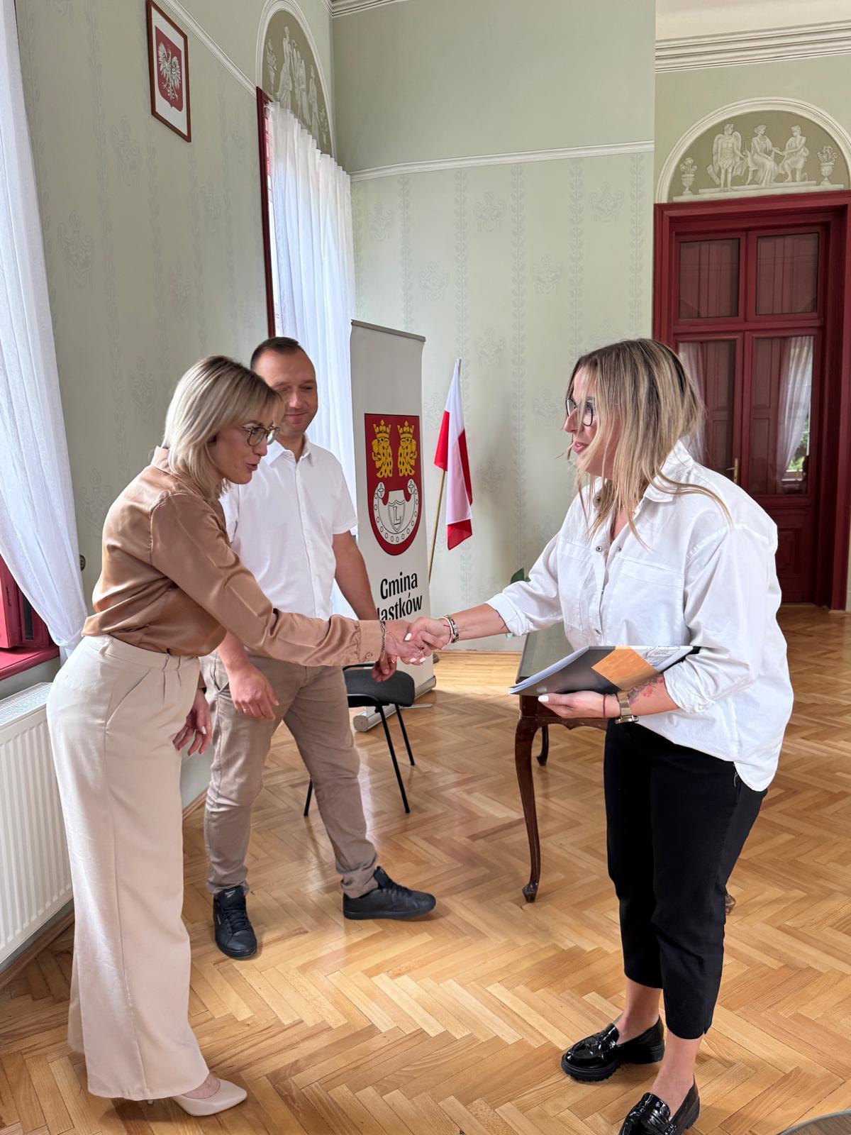 W dniu 26 sierpnia 2025 r. w Urzędzie Gminy Jastków odbyło się wręczenie aktów nadania stopnia awansu zawodowego nauczyciela mianowanego nauczycielom kontraktowym i początkującym z placówek oświatowych prowadzonych przez Gminę Jastków.