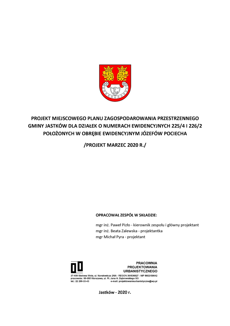 WYŁOŻENIE DO PUBLICZNEGO WGLĄDU PROJEKTU MIEJSCOWEGO PLANU ZAGOSPODAROWANIA PRZESTRZENNEGO GMINY JASTKÓW