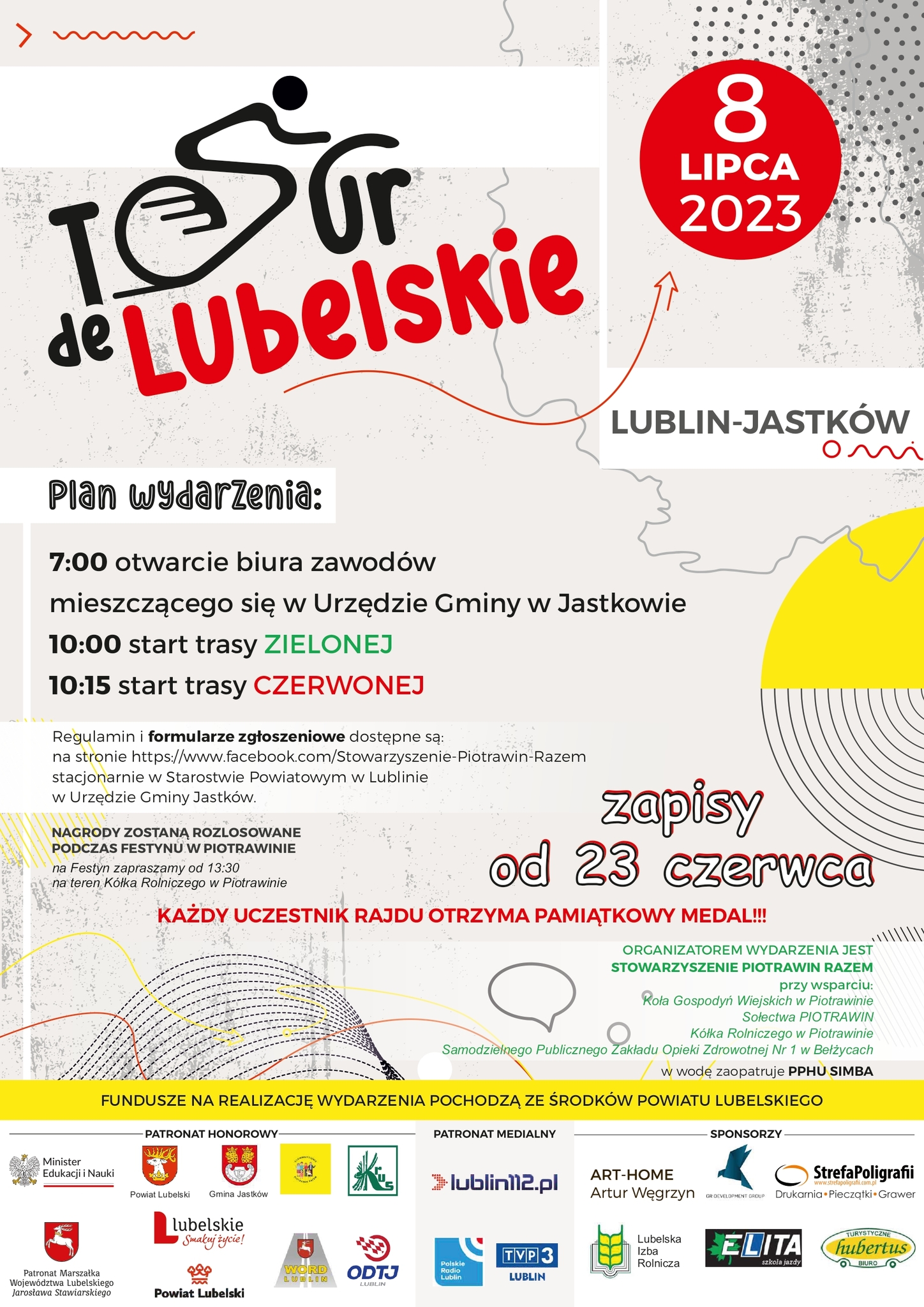 Serdecznie zapraszamy wszystkich mieszkańców oraz sympatyków Powiatu Lubelskiego do udziału w II edycji wyjątkowego rajdu rowerowego Tour de Lubelskie po malowniczych terenach Gminy Jastków, który odbędzie się już w najbliższą sobotę, 8 lipca.