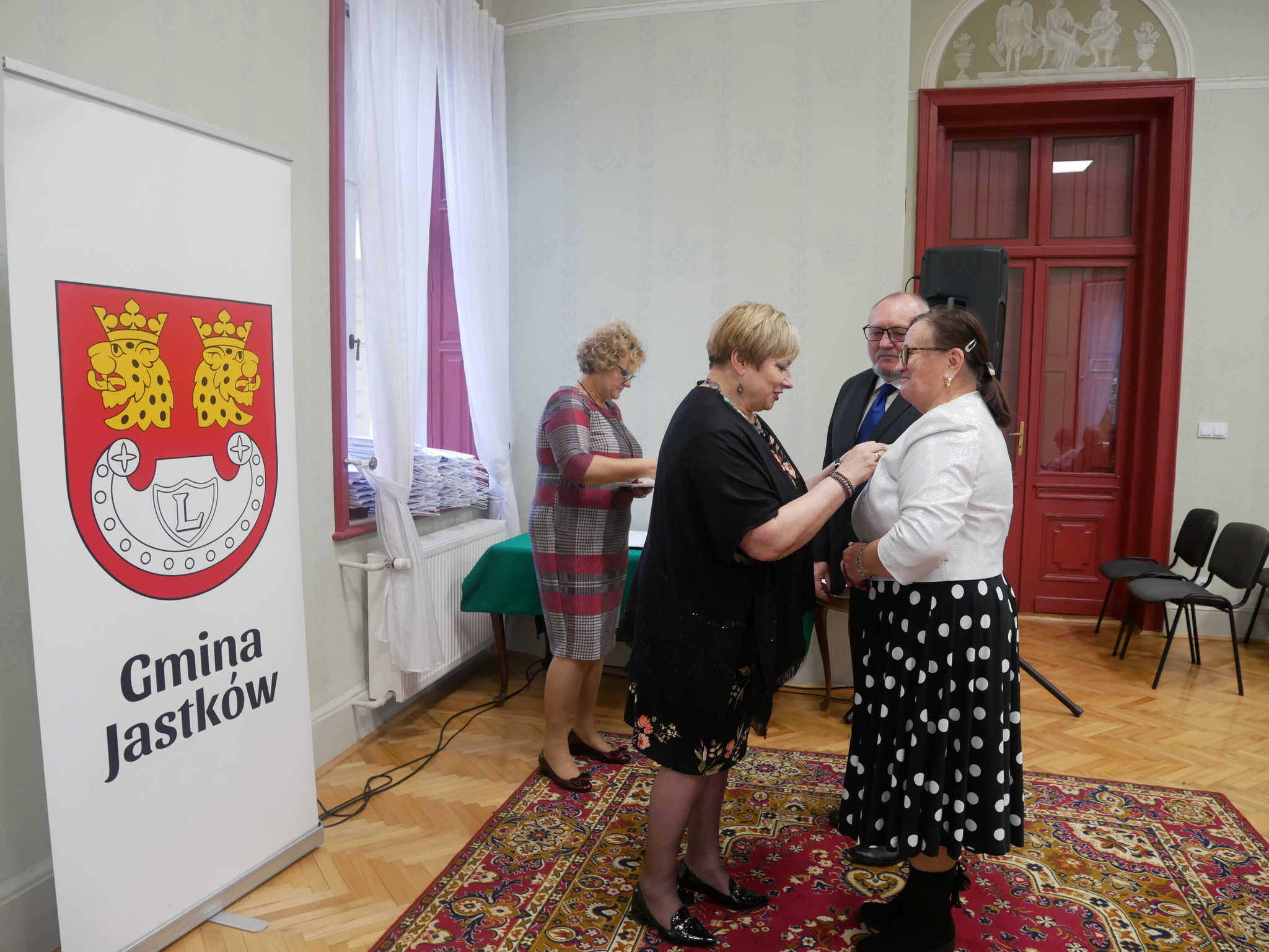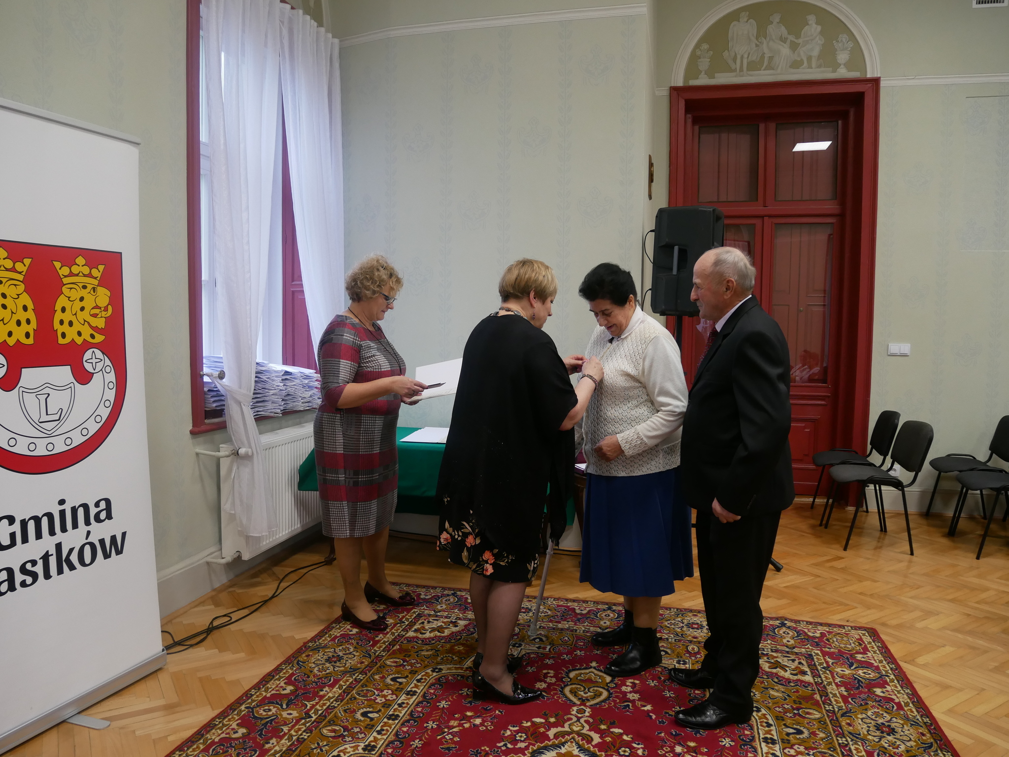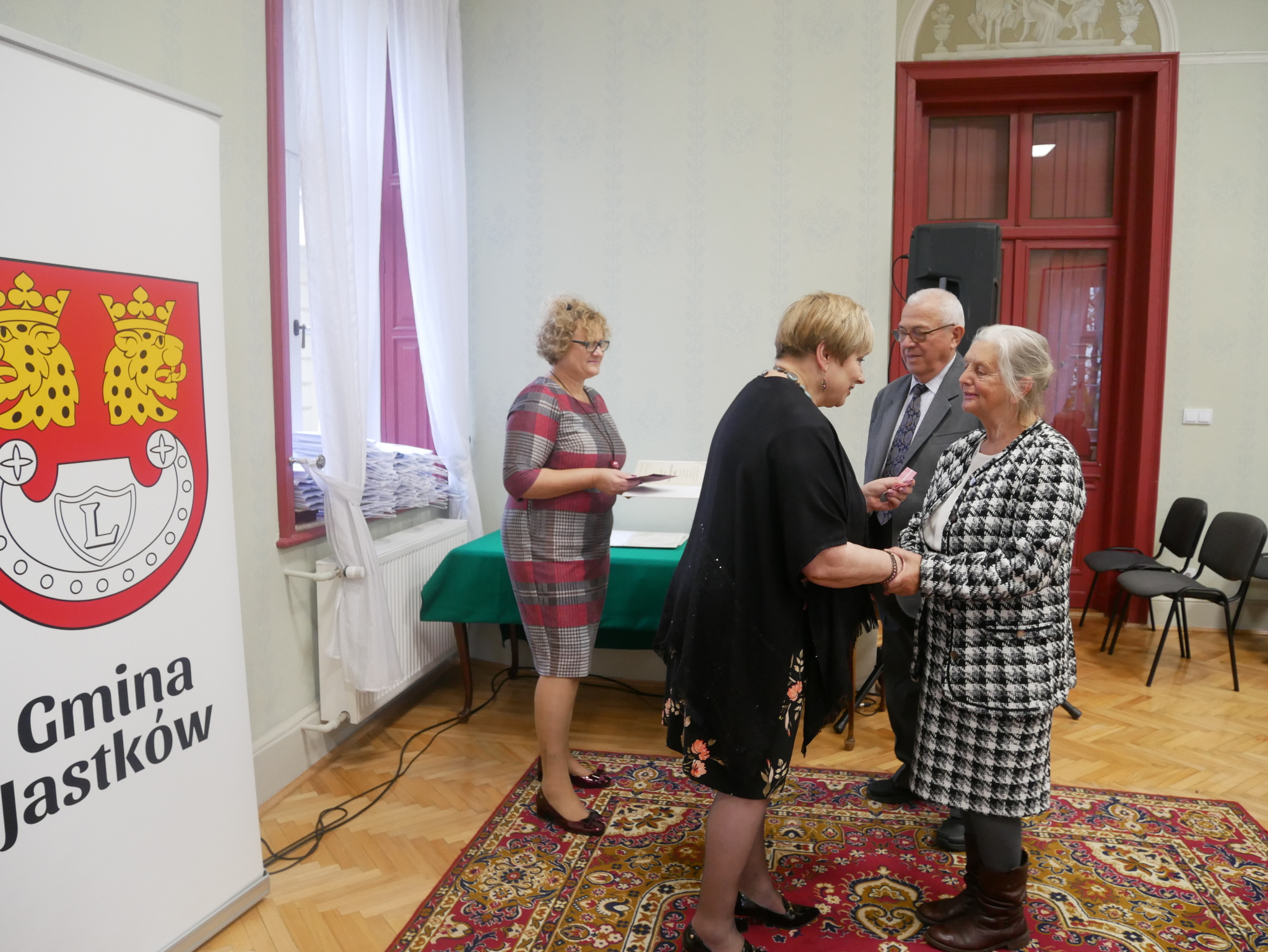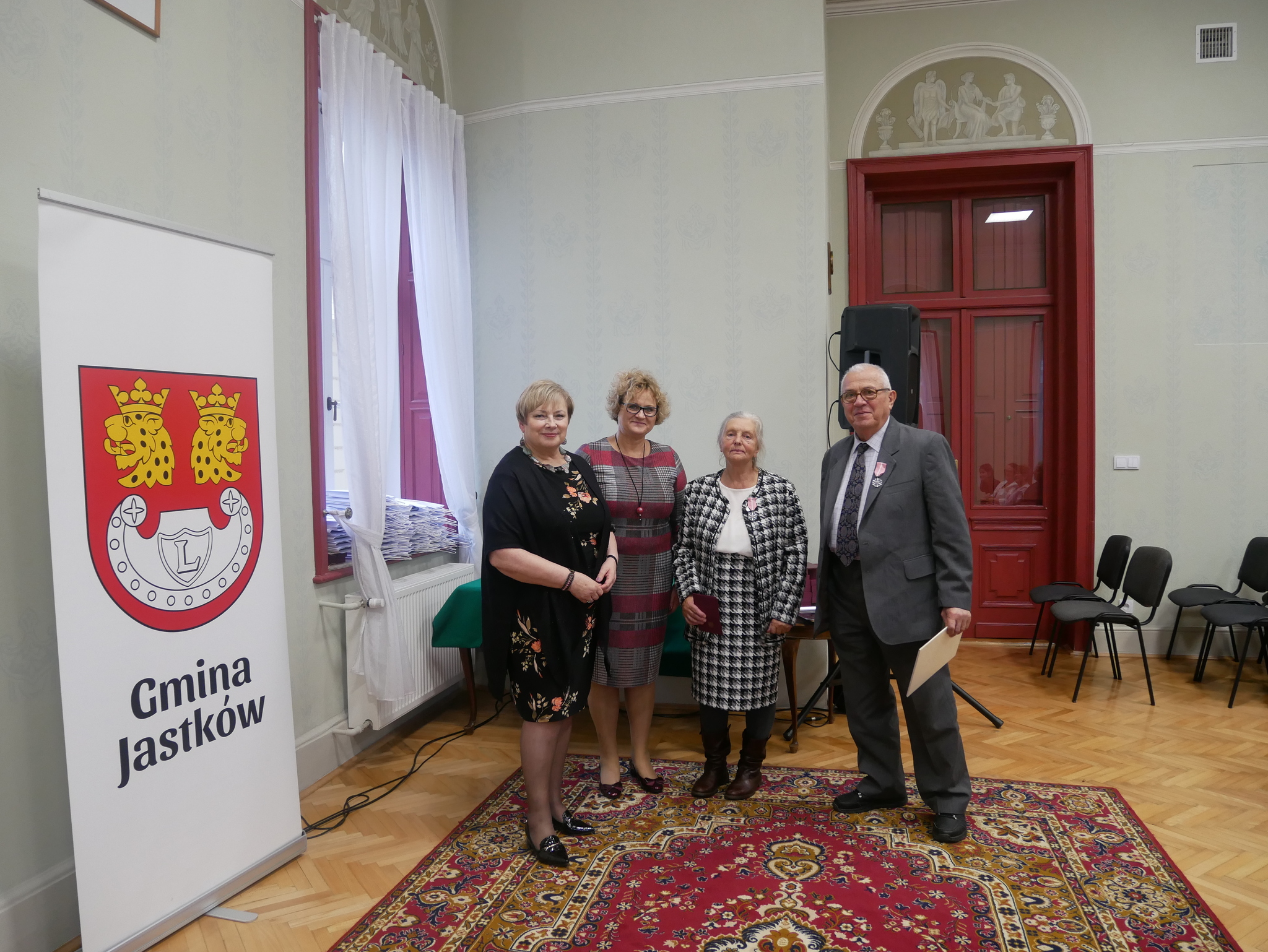 Ceremonia jubileuszowa rozpoczęła się od powitania gości przez Panią Wójt – Teresę Kot, która wraz z Panią Agatą Zasadą-Wrzesińską -Kierownikiem USC poprowadziły tę doniosłą uroczystość. Głównym punktem wydarzenia było wręczenie medali przyznanych przez Prezydenta Rzeczypospolitej Polskiej, na dowód społecznego uznania dla trwałości małżeństw z terenu gminy Jastków. Jest to piękny przykład trwającej miłości i zaangażowania w budowanie trwałych więzi małżeńskich.