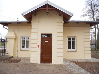 Prace budowlane/konserwatorskie przy kordegardzie wraz z adaptacją do pełnienia nowych funkcji użytkowych obejmujące: przeprowadzenie prac budowlanych polegających na wykonaniu robót ziemnych, remoncie ścian fundamentowych elewacji – przy zachowaniu oryginalnego detalu architektonicznego, tynki gładkie, kolorystyka tożsama kolorystyką pałacu, odnowienie pomieszczeń, ścian zewnętrznych i wewnętrznych, remoncie dachu przy zachowaniu istniejącej formy dachu z dekoracyjnymi ostatkami krokwi, nowe pokrycie dachowe z blachy płaskiej tytanowo-cynkowej (zgodnie z pokryciem przewidzianym dla dachu pałacu) wraz ze stropem, wykonanie posadzek i stolarki okiennej – drewnianej, powtarzającej historyczne podziały i drzwiowej (drzwi płycinowe, drewniane) oraz wykonanie wokół budynku opaski izolacyjnej i odwadniającej (zalecana kostka granitowa).