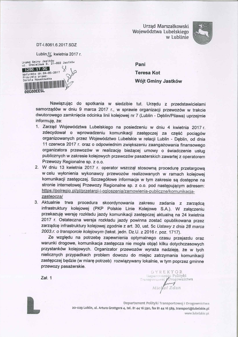 Informacja dot. Rozkładu jazdy zastępczej komunikacji autobusowej za pociągi na odcinku Lublin - Dęblin - Lublin od 11.06.2017r.