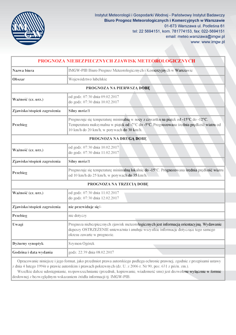 KOMUNIKAT METEOROLOGICZNY