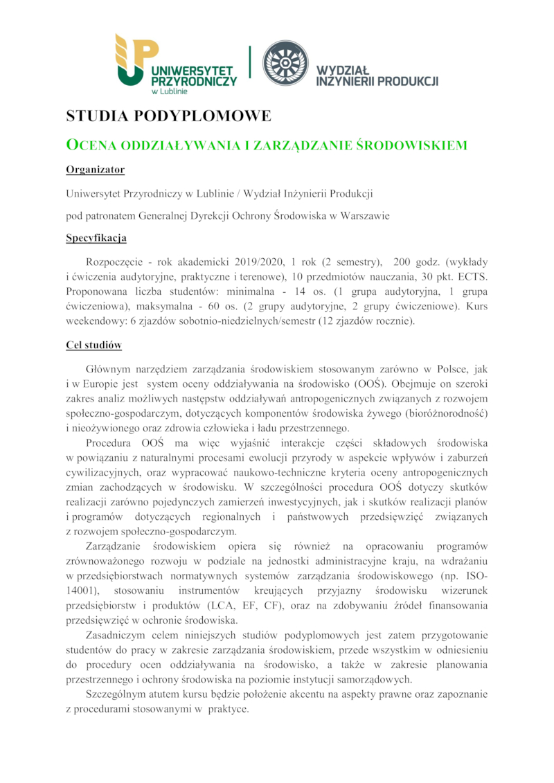 NOWE KIERUNKI KSZTAŁCENIA NA UNIWERSYTETCIE PRZYRODNICZYM W LUBLINIE