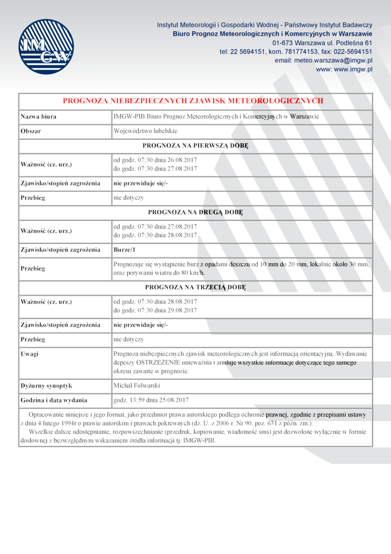 PROGNOZA NIEBEZPIECZNYCH ZJAWISK METEOROLOGICZNYCH