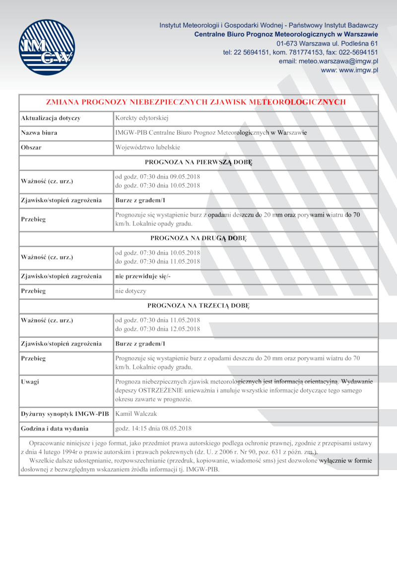 PROGNOZA NIEBEZPIECZNYCH ZJAWISK METEOROLOGICZNYCH