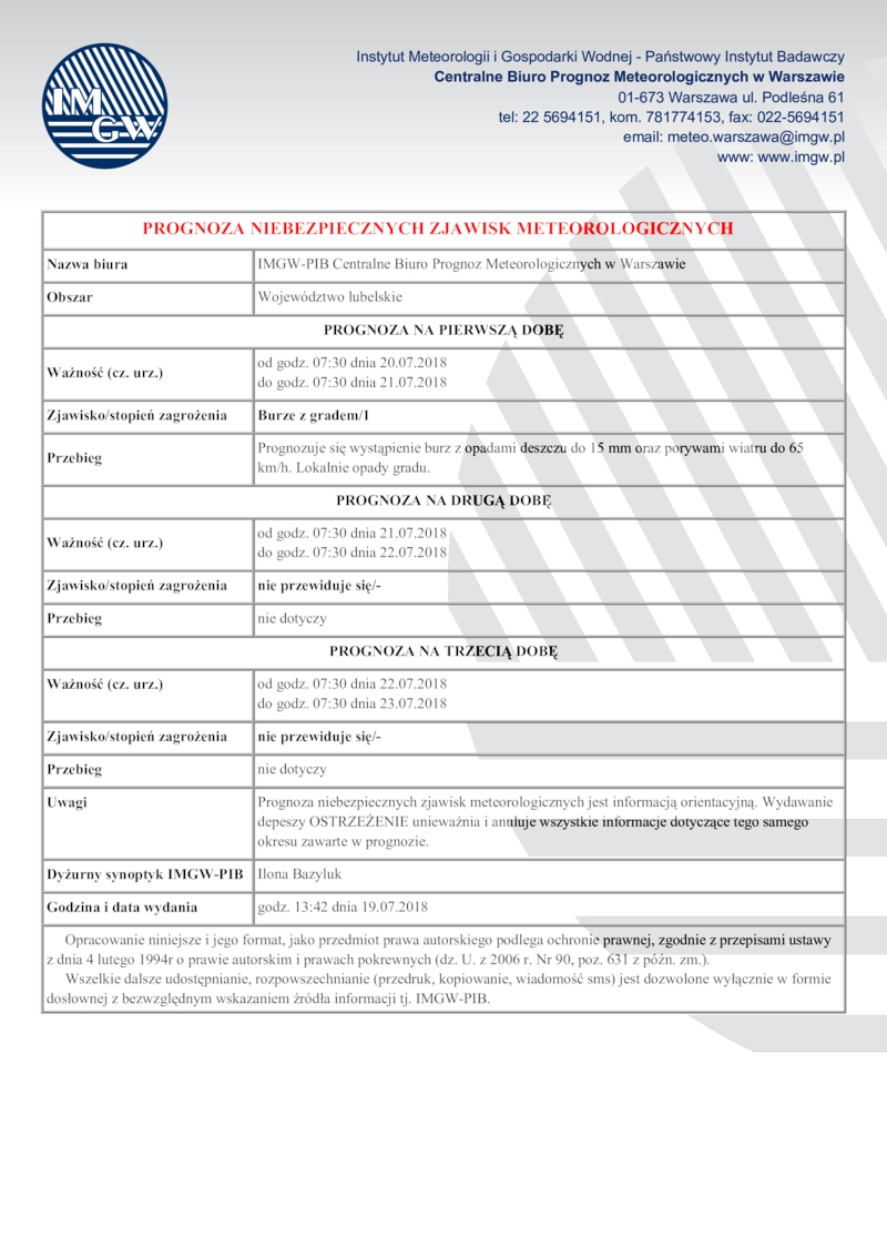 PROGNOZA NIEBEZPIECZNYCH ZJAWISK METEOROLOGICZNYCH
