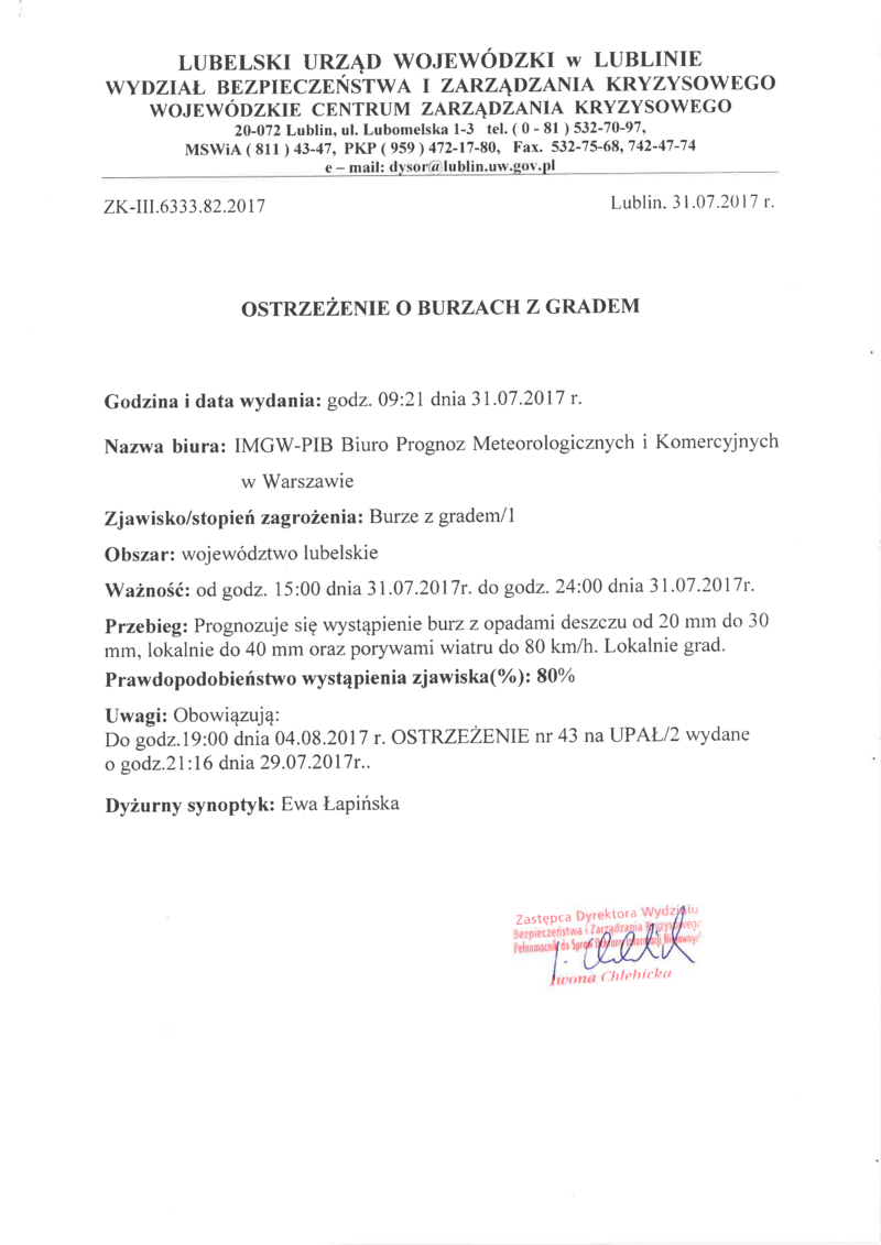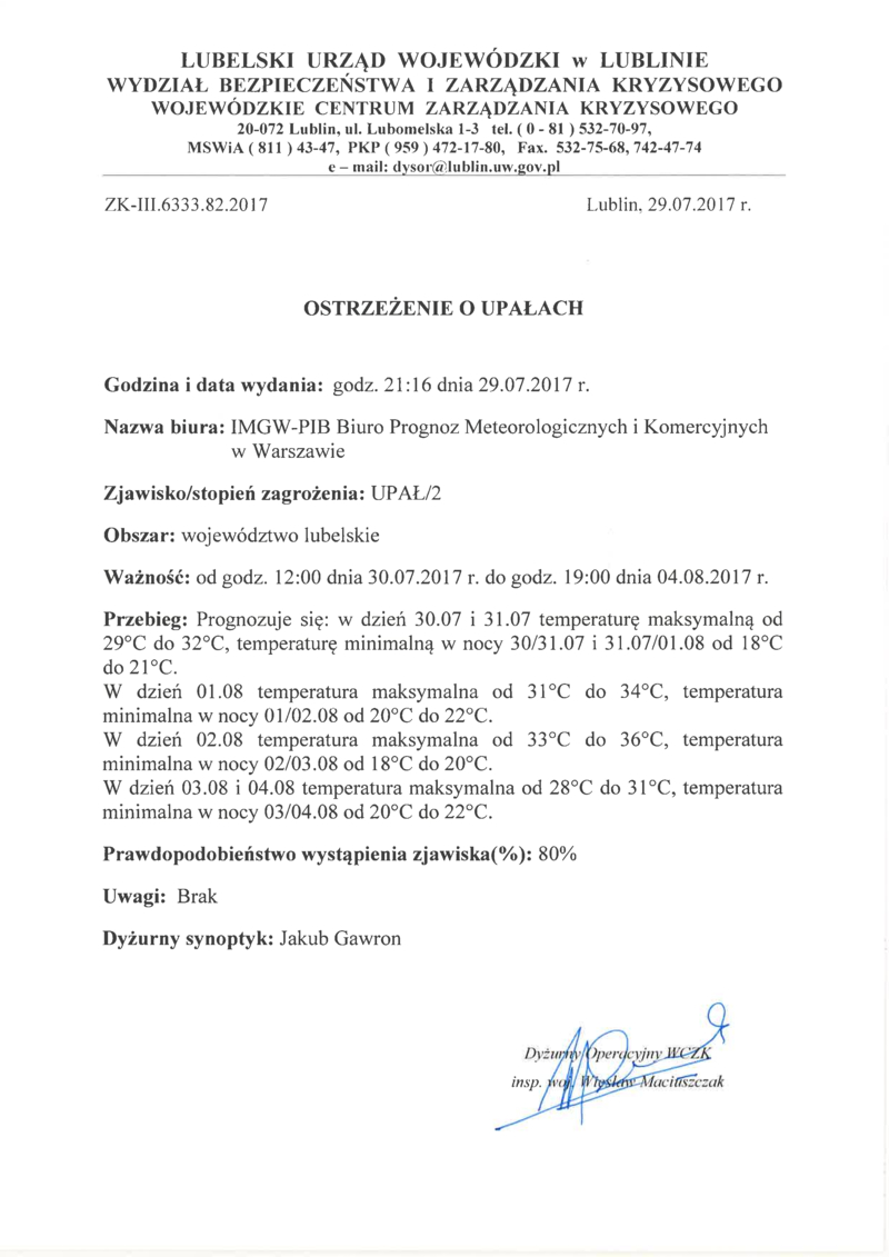 UWAGA NA UPAŁY I BURZE!