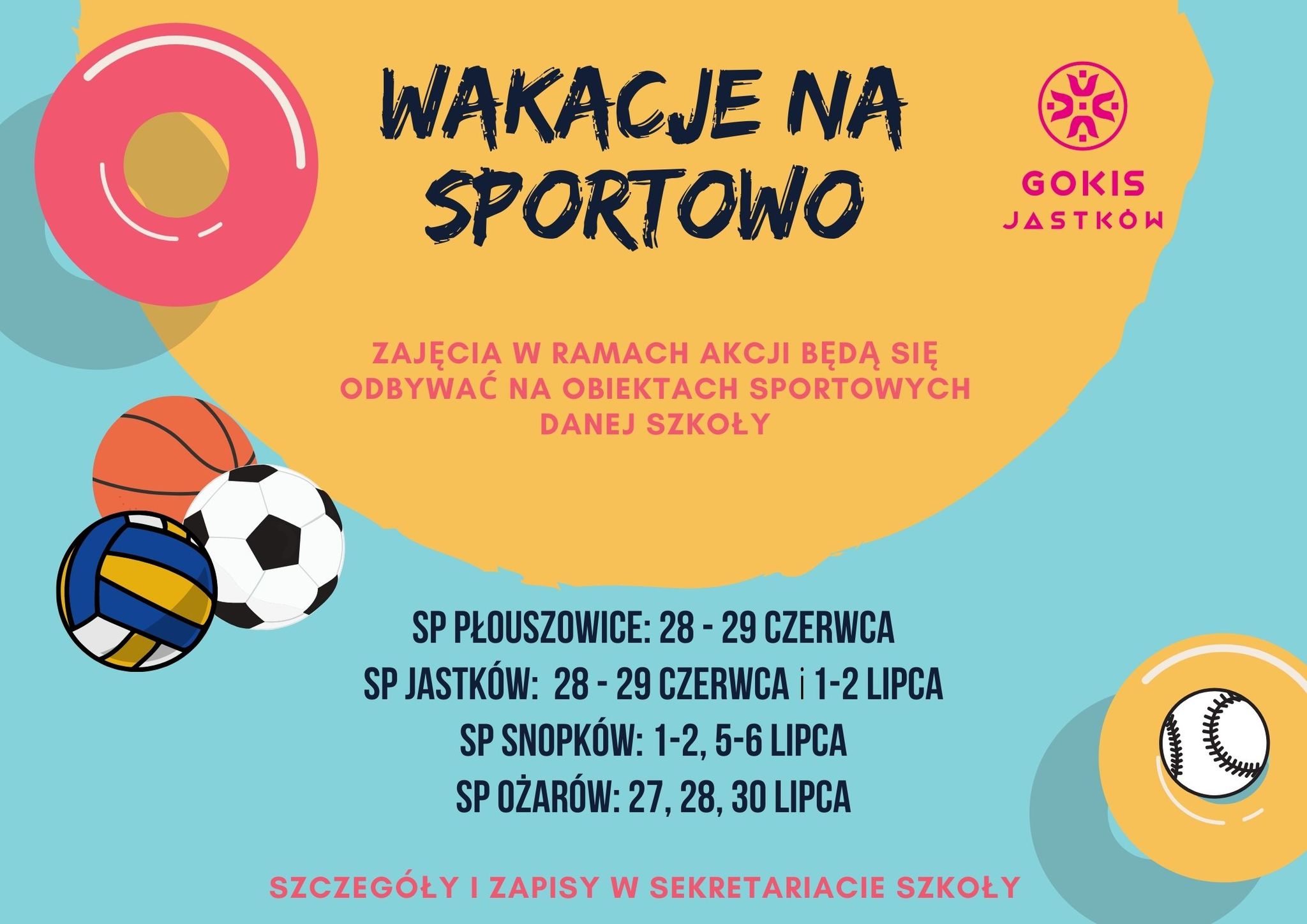 GMINNY OŚRODEK KULTURY I SPORTU WRAZ ZE SZKOŁAMI Z TERENU GMINY JASTKÓW ZAPRASZAJĄ NA AKCJĘ "WAKACJE NA SPORTOWO"