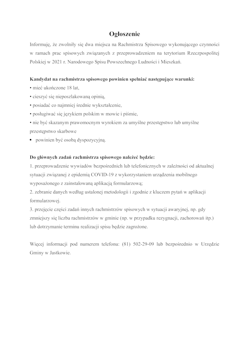 OGŁOSZENIE O DODATKOWYM NABORZE NA RACHMISTRZÓW.