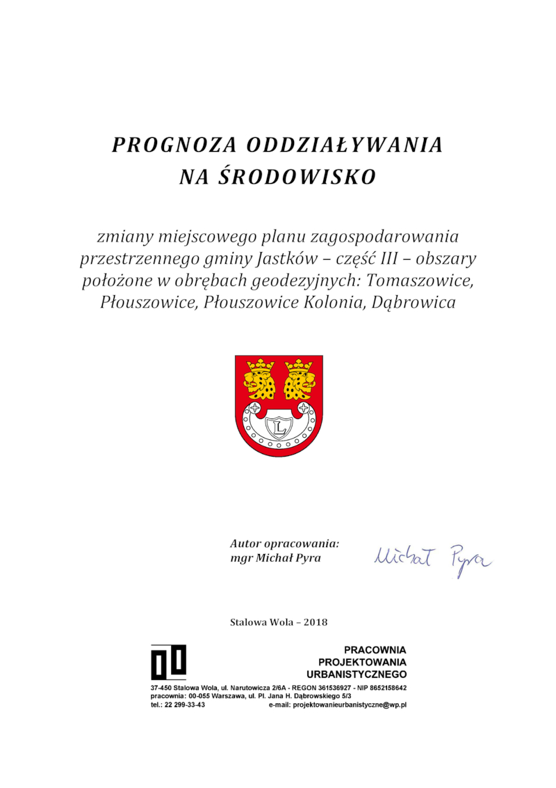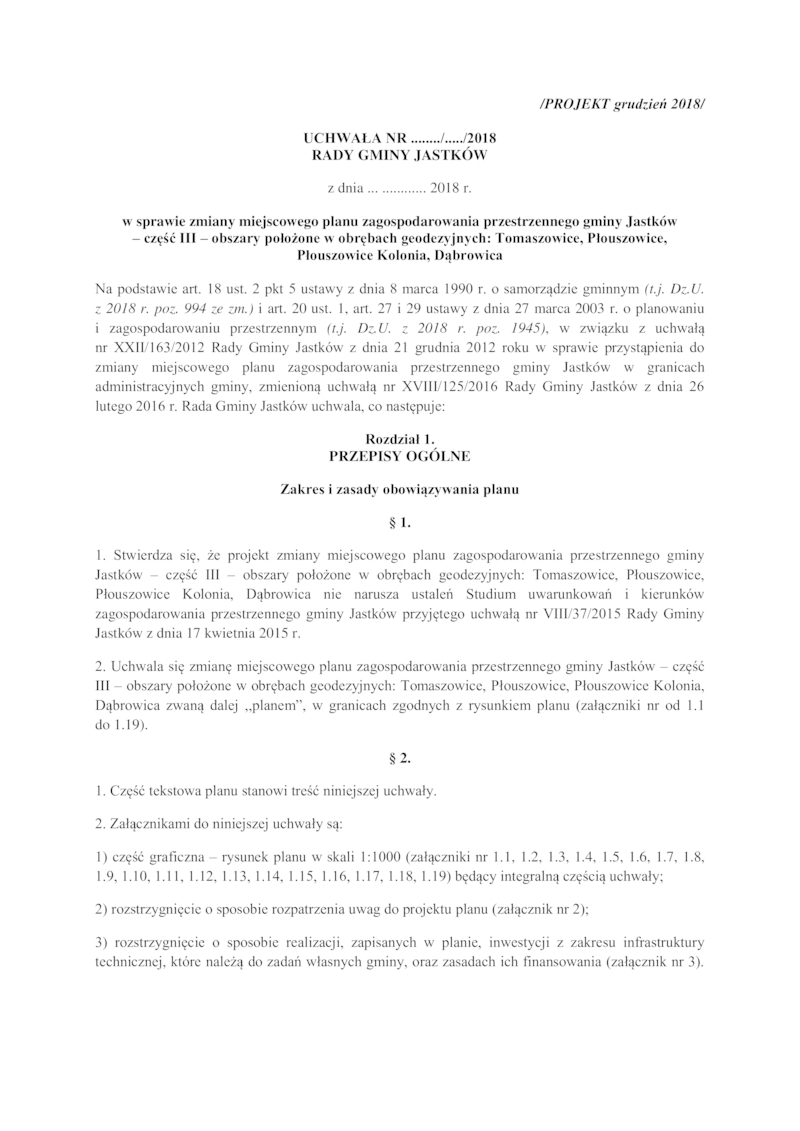 OGŁOSZENIE O PONOWNYM WYŁOŻENIU DO PUBLICZNEGO WGLĄDU PROJEKTU ZMIANY MIEJSCOWEGO PLANU ZAGOSPODAROWANIA PRZESTRZENNEGO GMINY JASTKÓW – CZĘŚĆ III – OBSZARY POŁOŻONE W OBRĘBACH GEODEZYJNYCH: TOMASZOWICE, PŁOUSZOWICE, PŁOUSZOWICE KOLONIA, DĄBROWICA