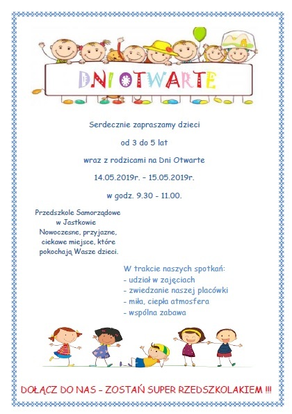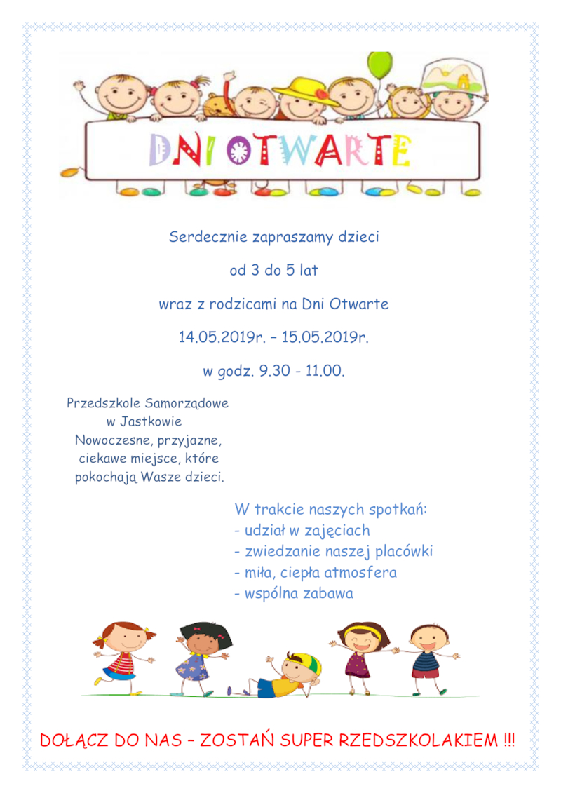 DNI OTWARTE W PRZEDSZKOLU SAMORZĄDOWYM W JASTKOWIE
