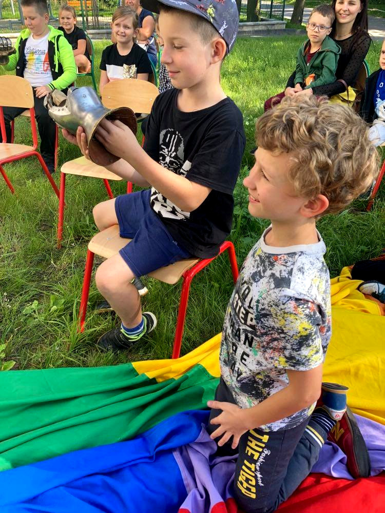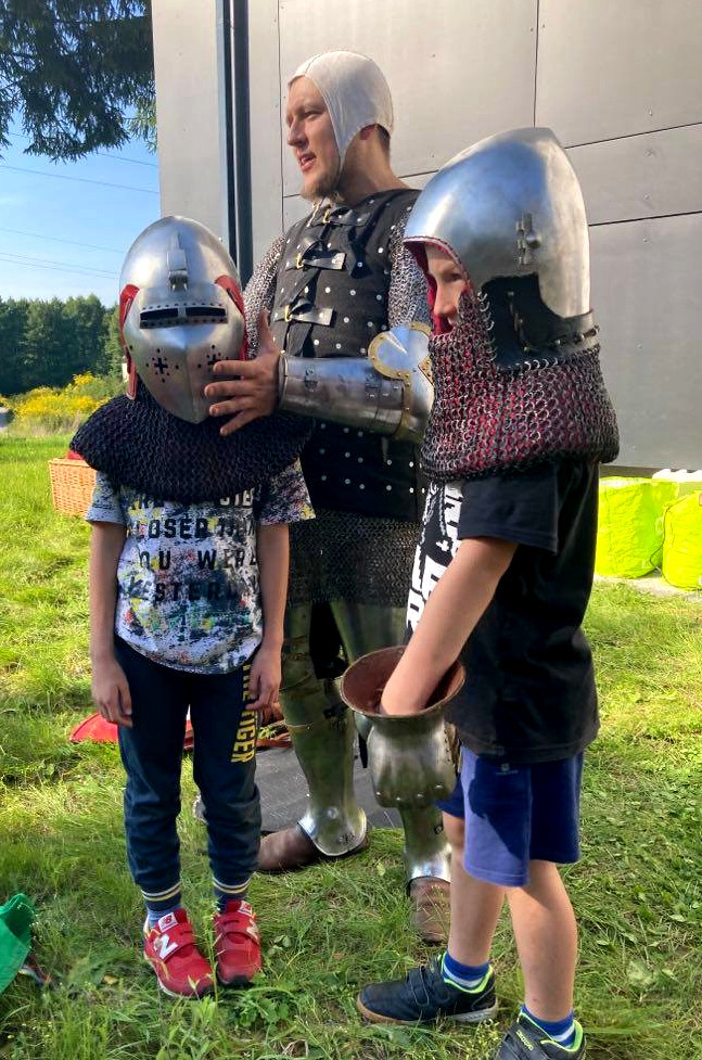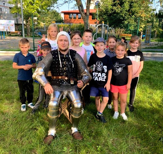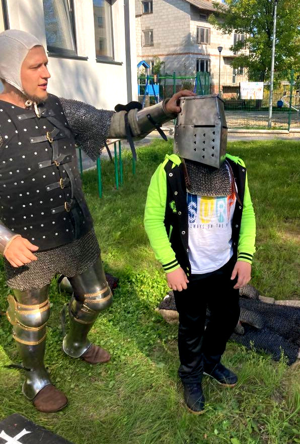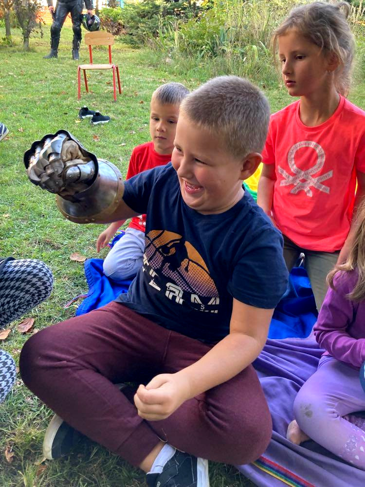 W dniach 7-8 września odbyła się w naszych świetlicach dworska impreza, na której nasze dzieciaki odwiedził prawdziwy średniowieczny rycerz! Nasz gość opowiedział dzieciom i rodzicom o historii i tradycjach w czasach średniowiecza. Rycerz pokazał również jak wygląda prawdziwa zbroja, co więcej nasze pociechy miały okazję przymierzyć niektóre części rycerskiego rynsztunku. Dzieciaki ze zdziwieniem odkryły, jak ciężki jest naprawdę taki pancerz. Potem przyszedł czas na dworskie zabawy i konkursy z nagrodami. W dzieciach obudził się prawdziwy duch rywalizacji i z chęcią wzięły udział w średniowiecznych pojedynkach. Nie obyło się oczywiście bez przepysznego poczęstunku! To był wspaniały dzień w rodzinnej atmosferze z piękną średniowieczną muzyką w tle. Zapraszamy do obejrzenia zdjęć z tego niezwykłego dnia!