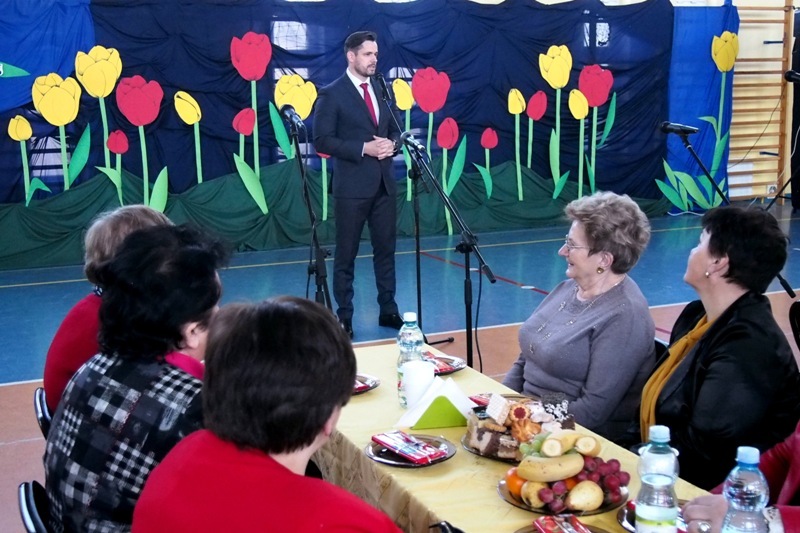 Sobota 10 marca okazał się ciepła, słoneczna, wprost wymarzona do świętowania. Tego dnia Panie z Kół Gospodyń Wiejskich gminy Jastków zostały zaproszone na występy z okazji Dnia Kobiet. Wszystko rozpoczęło się o godz. 10.00 w Szkole Podstawowej im. B. Prusa w Płouszowicach. Życzenia samych radosnych chwil złożyli panowie Marek Wieczerzak, Przewodniczący Rady Gminy oraz Kamil Ziółkowski, dyrektor Gminnego Ośrodka Kultury i Sportu. Kwiatami obdarowana został także pierwsza dama gminy Jastków p. Teresa Kot.