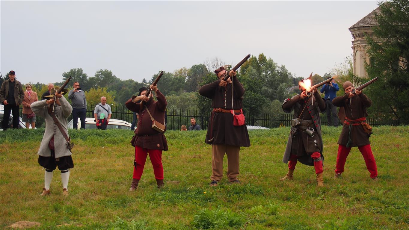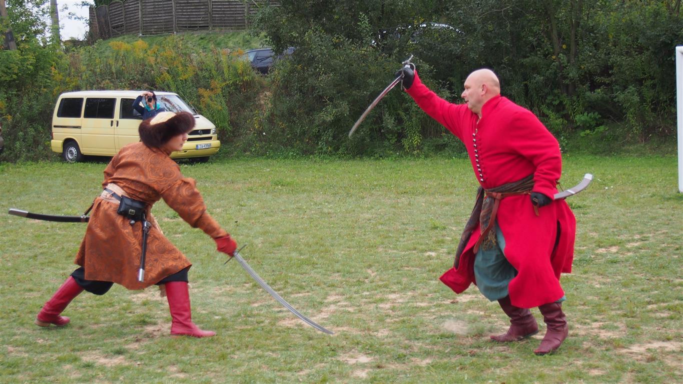 Nie lada gratką okazały się liczne historyczne pokazy. Wystąpiły grupy rekonstrukcyjne m.in. Chorągiew Husarska Ziemi Lubelskiej, która wiernie odtworzyła moment wymarszu na wojnę rodem z powieści Henryka Sienkiewicza. Żywą lekcję historii pokazała grupa Towarzystwa Szabli i Miecza z Zamościa, która w historycznych strojach zaprezentowała sztukę dawnego frechtunku z XVI i XVII wieku. Do Dąbrowicy zajechali także zawodowi rycerze! Pokaz prawdziwych walk rycerskich odbył się na scenie letniej GOKiS. Walki bohurtowe zaprezentowali uczestnicy eliminacji do tegorocznej Rycerskiej Kadry Narodowej, wśród nich był nasz zaprzyjaźniony kowal (rycerz-pasjonat)p. Tomasz Gomoła, który w tym roku wraz z kadrą walczył na Rycerskich Mistrzostwa Świata!