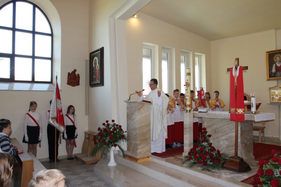 O godzinie 9.00, w kościele pw. bł. Karoliny Kózkówny w Snopkowie, odbyła się msza dziękczynna za 90 lat nauki w naszej szkole, połączona z prośbą o błogosławieństwo dla uczniów i pracowników placówki. Uczniowie przeszli do kościoła w uroczystym pochodzie, na czele którego kroczył poczet sztandarowy.
