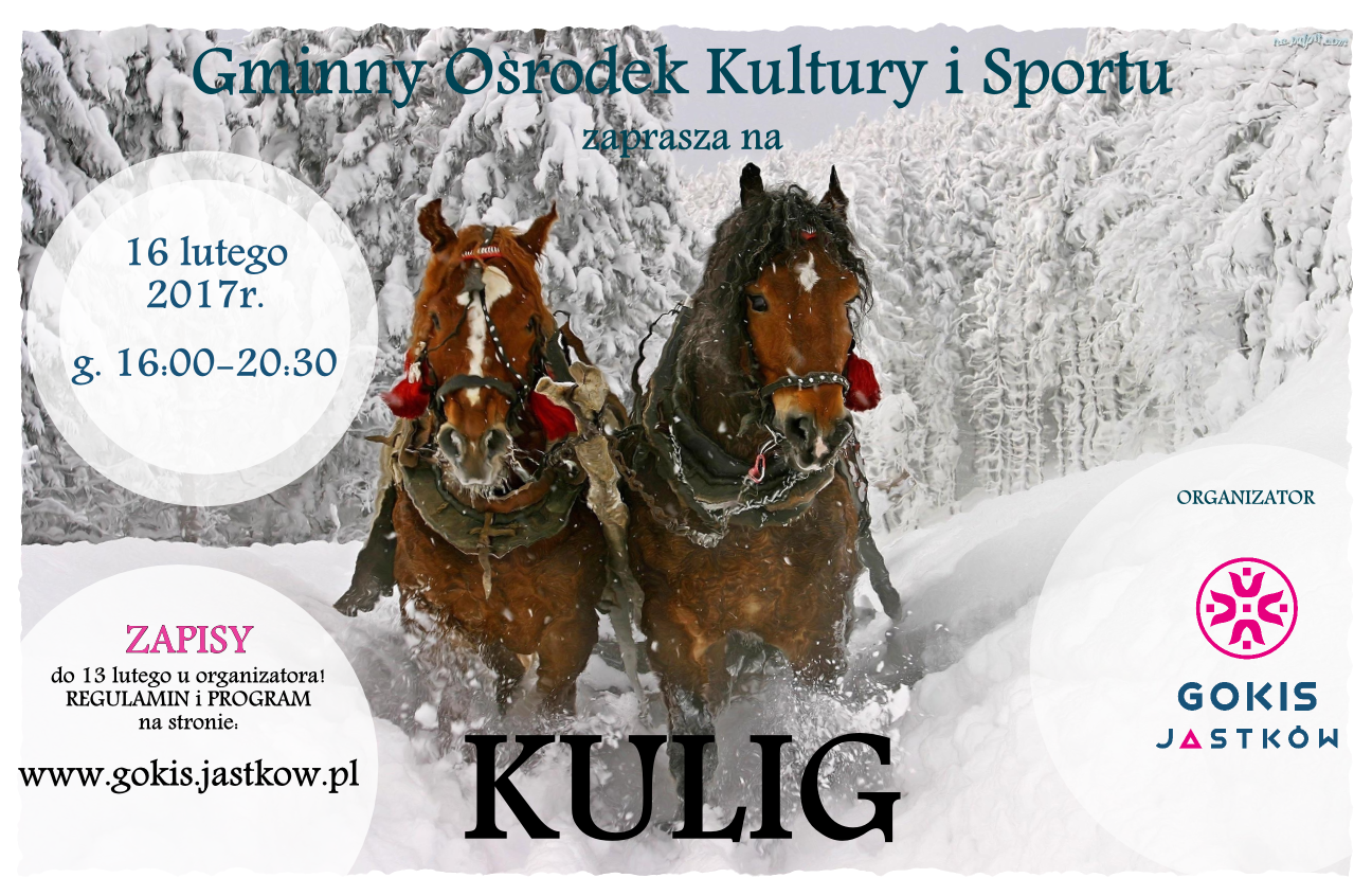 Zapraszamy mieszkańców Gminy Jastków na KULIG! Więcej na stronie GOKiS.