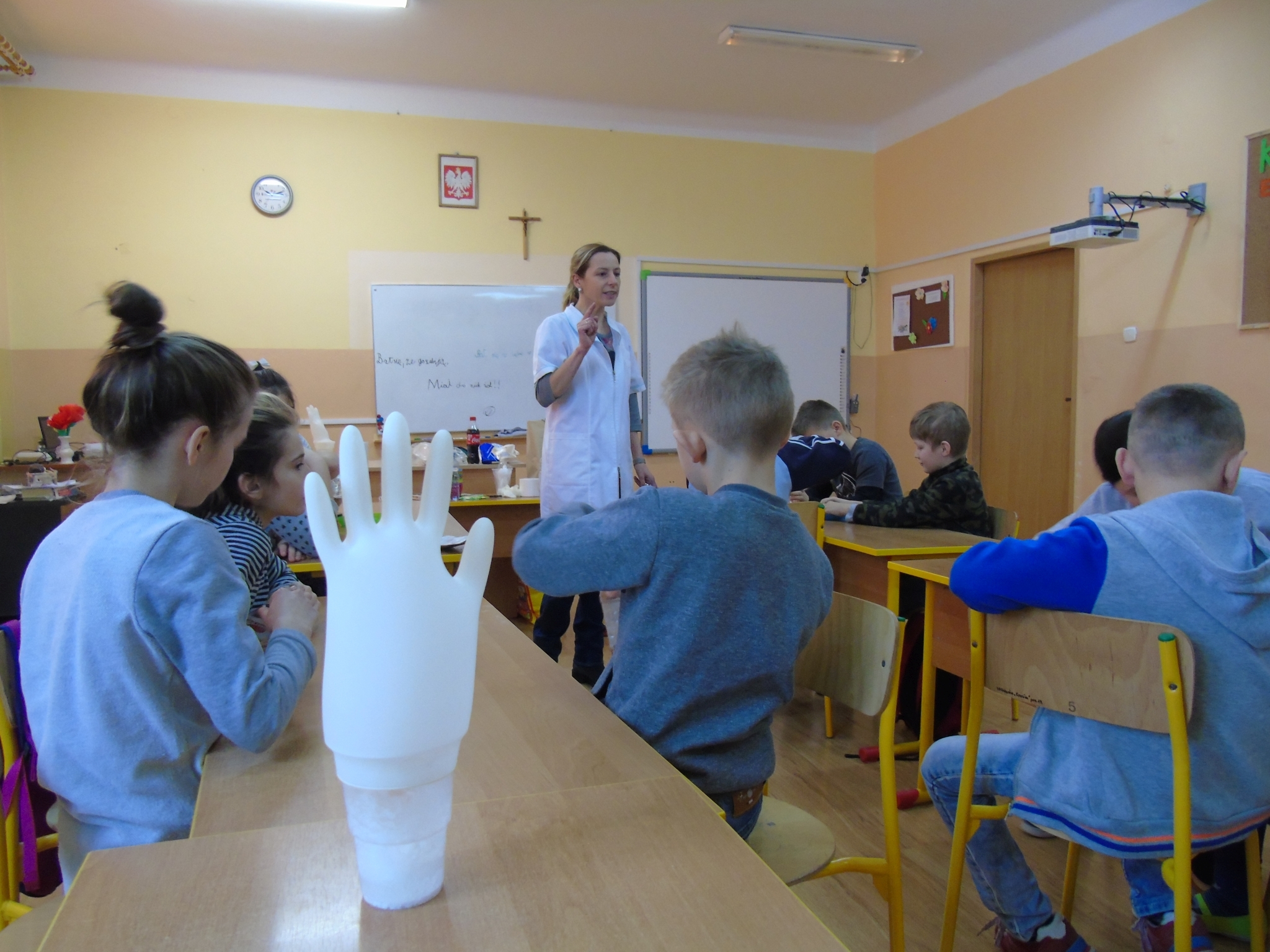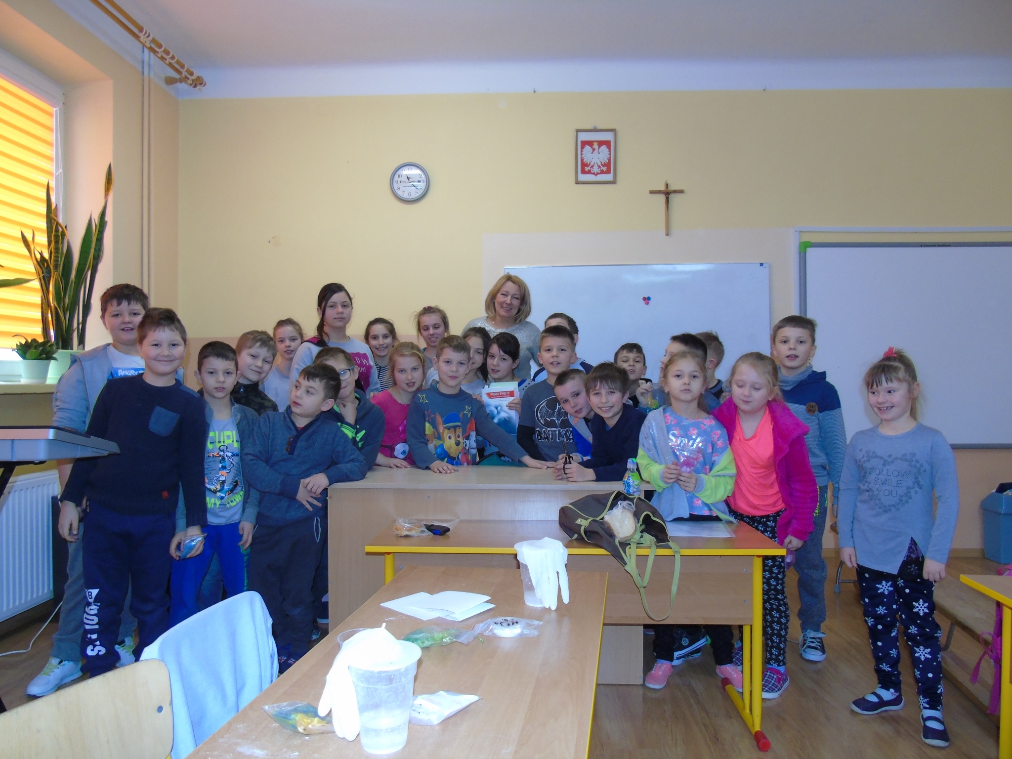 Kolejna przygoda, którą miały okazje przeżyć dzieci podczas ferii, wiązała się z wizytą w szkole firmy „Genimus” i naukowymi czarami. Uczniowie w roli prawdziwych naukowców tworzyli manufakturę soli kąpielowych. Pani Iwona i pan Robert uczyli, jak z najprostszych składników przygotować pachnące sole do kąpieli. Na koniec każdy zabrał ze sobą pięknie opakowaną pamiątkę. Tego dnia również dzieci miały okazję wyruszyć w podróż z prorokiem Jonaszem po starożytnej Niniwie. Razem z nim przeżywały rozterki i dramat wyrzucenia za burtę okrętu. Uczniowie, którzy wybrali zajęcia muzyczne, wspólnie z panem Adamem grali, śpiewali i bawili się przy ulubionej muzyce.