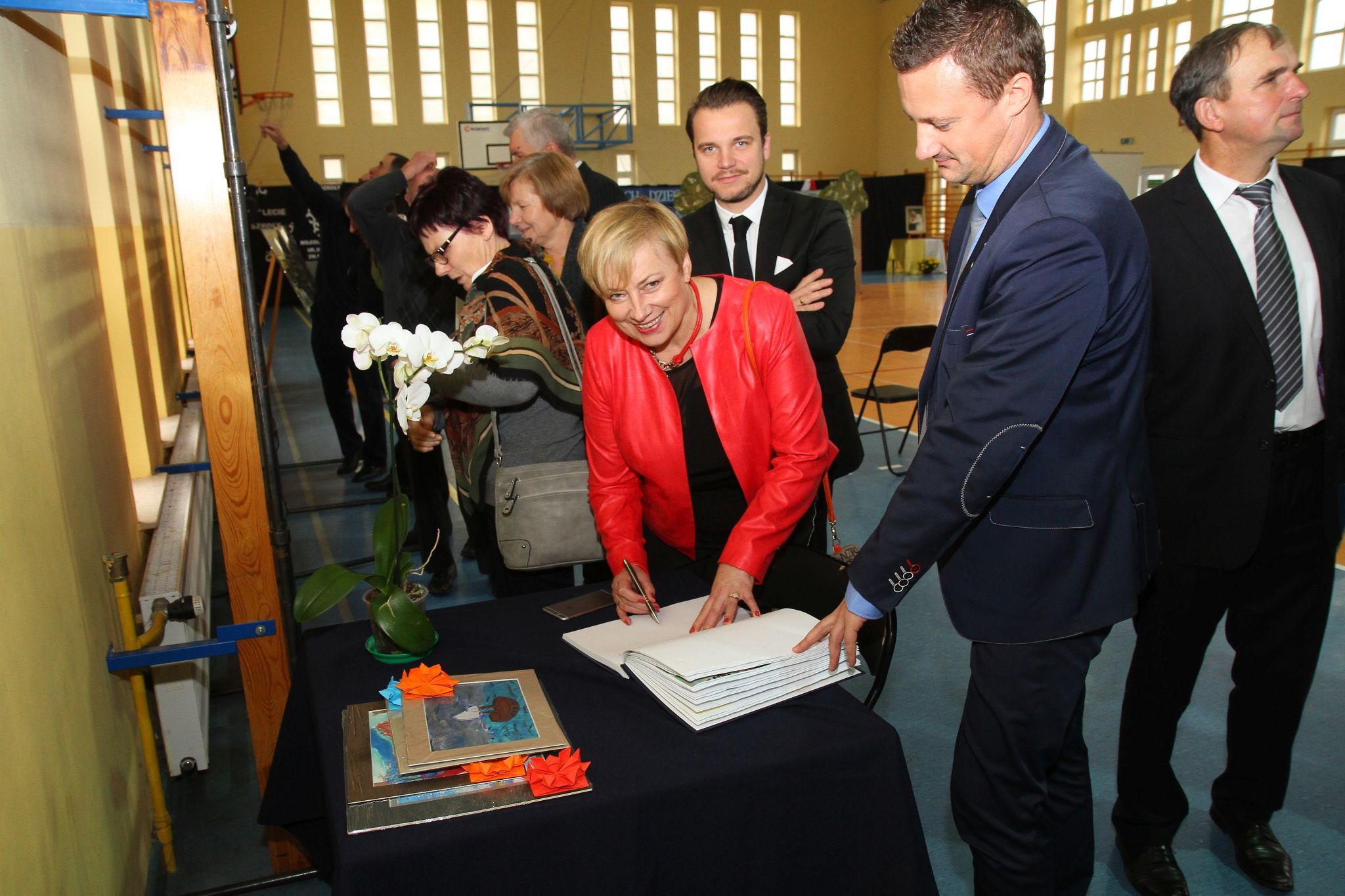 Gdy opadły emocje związane z występami artystycznymi goście zostali zaproszeni do obejrzenia wystawy fotograficznej ilustrującej dzieje szkoły na przestrzeni ośmiu dekad. Wszyscy chętni wpisywali się do księgi pamiątkowej uroczystości.