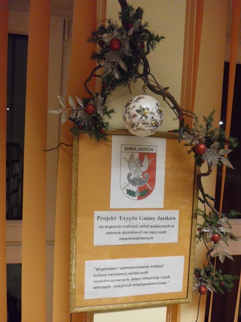Dzięki otrzymanej dotacji przeprowadzono cykl warsztatów z rękodzieła ludowego, których celem była integracja międzypokoleniowa dzieci, młodzieży, osób starszych i osób niepełnosprawnych. Działania te przyczyniły się do kształtowania umiejętności i upowszechniania tradycji naszego regionu, poprzez wykonane ozdoby. Przyczyniło się to do zachowania dziedzictwa kulturowego, ponieważ uczestnicy nabyli zdolność tworzenia dóbr kultury i ich upowszechniania. W warsztatach wzięli udział zarówno dzieci, młodzież jak i osoby starsze, dzięki temu miała miejsce integracja międzypokoleniowa. Osoby niepełnosprawne, które uczestniczyły w warsztatach wzmocniły poczucie własnej wartości, rozwinęły talenty osobiste, czerpały radość ze wspólnego spędzania czasu o czym otwarcie mówili. Młodzi ludzie zrozumieli, że wartość człowieka nie zależy od stopnia jego sprawności a jej brak nie zmniejsza jego wartości. Uczniowie uświadomili sobie, że każdy z nas ma wady i słabe strony, że nietolerancja i odrzucenie może spotkać każdego z nas i że konieczne jest wykazanie się postawą akceptacji wobec wszystkich otaczających nas osób, a szczególnie tych, które mają więcej problemów z normalnym funkcjonowaniem wśród społeczeństwa.