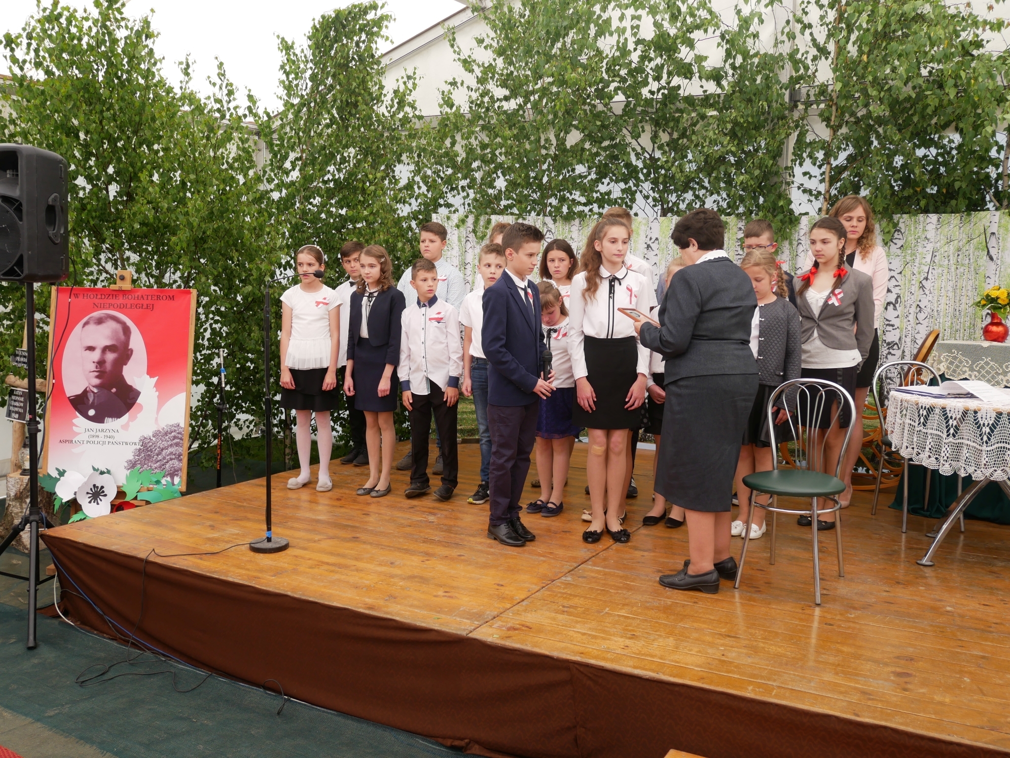 Zwieńczeniem podejmowanych przez szkołę działań była podniosła uroczystość, która miała miejsce 21 maja 2018 r. Swoją obecnością uświetnili ją znakomici goście m.in. wnuczka aspiranta Jana Jarzyny- pani Elżbieta Jarzyna, Komendant KWP w Lublinie insp. Robert Szewc, Dyrektor Biura Historii i Tradycji Policji KGP nadkom. Krzysztof Musielak, Zastępca Naczelnika Wydziału ds. Ceremoniału Policyjnego KGP kom. Artur Duszak, Prezes Warszawskiego Stowarzyszenia Rodzina Policyjna 1939 r. pan Michał Krzysztof Wykowski, prezes Stowarzyszenia Parafia ojciec Tomasz Olczak, koordynator programu Katyń… Ocalić od zapomnienia- pani Małgorzata Jędruch- Włodarczyk, przedstawiciele władz województwa, powiatu, miasta Lublin, Gminy Jastków i Gminy Garbów.