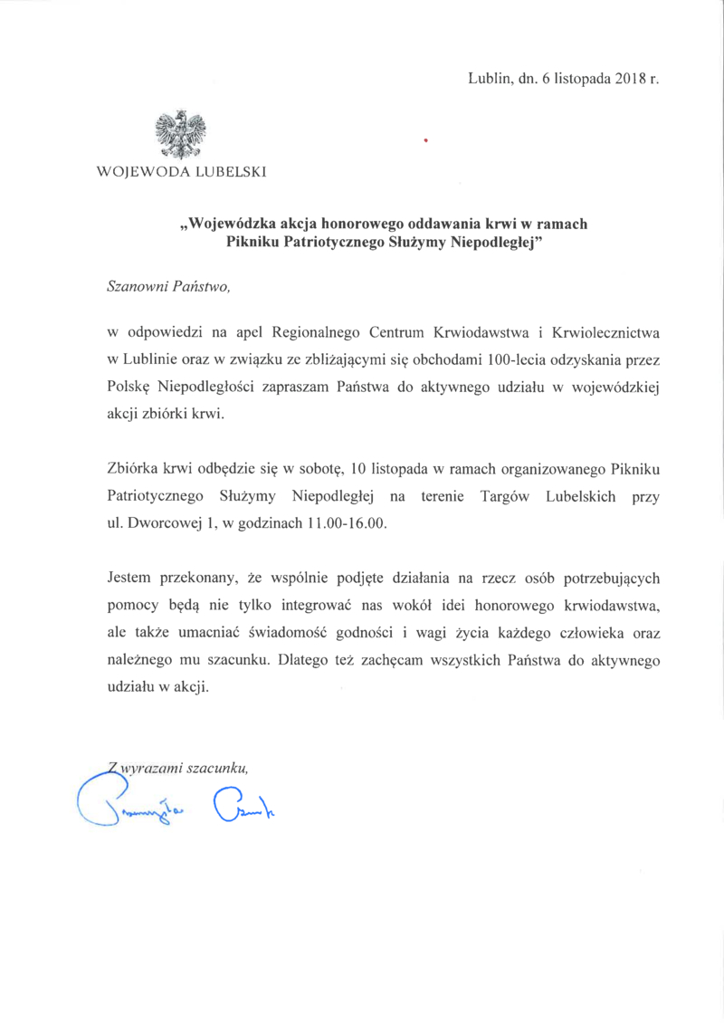 WOJEWÓDZKA AKCJA HONOROWEGO ODDAWANIA KRWI
